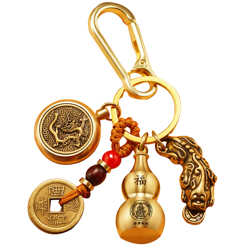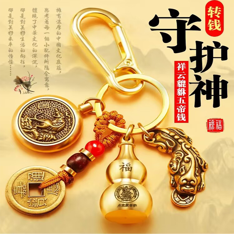 纯黄铜十二生肖本命佛八大守护貔貅钥匙扣五帝钱男女挂件