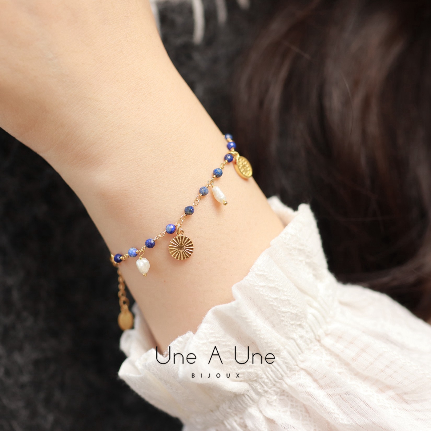 法国设计une a une正品代购天然石珍珠十字架小天使人像吊坠手链