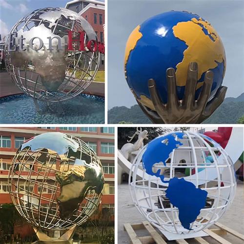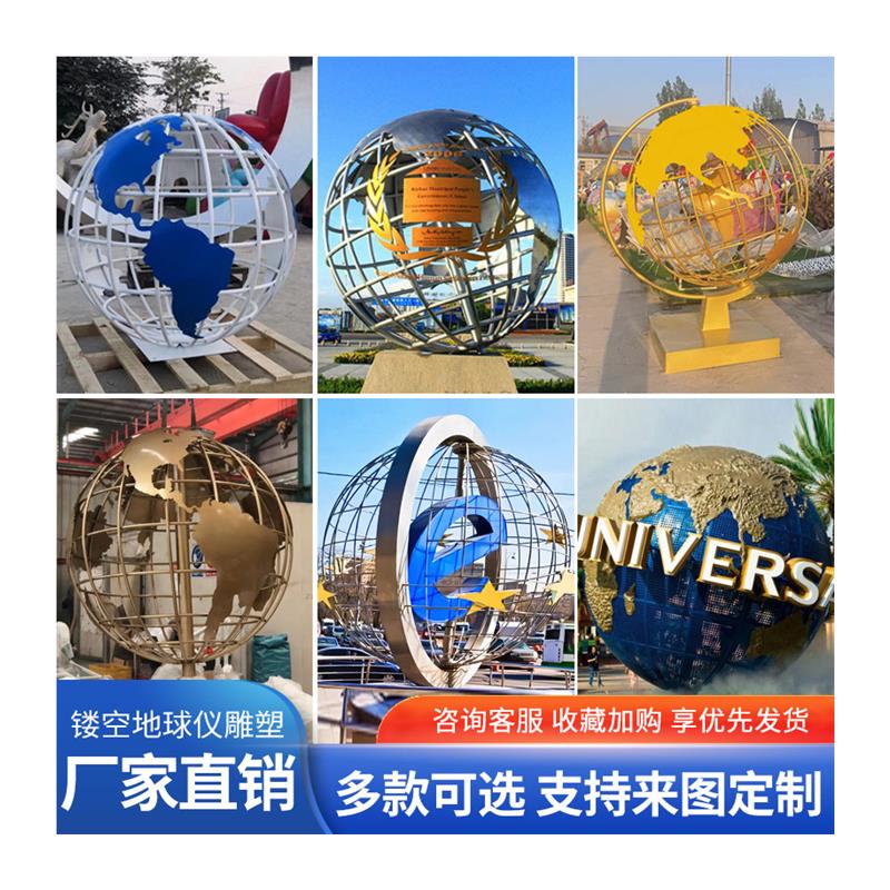 大型不锈钢地球仪雕塑定制户外镜面镂空球学校金属圆球装饰摆件