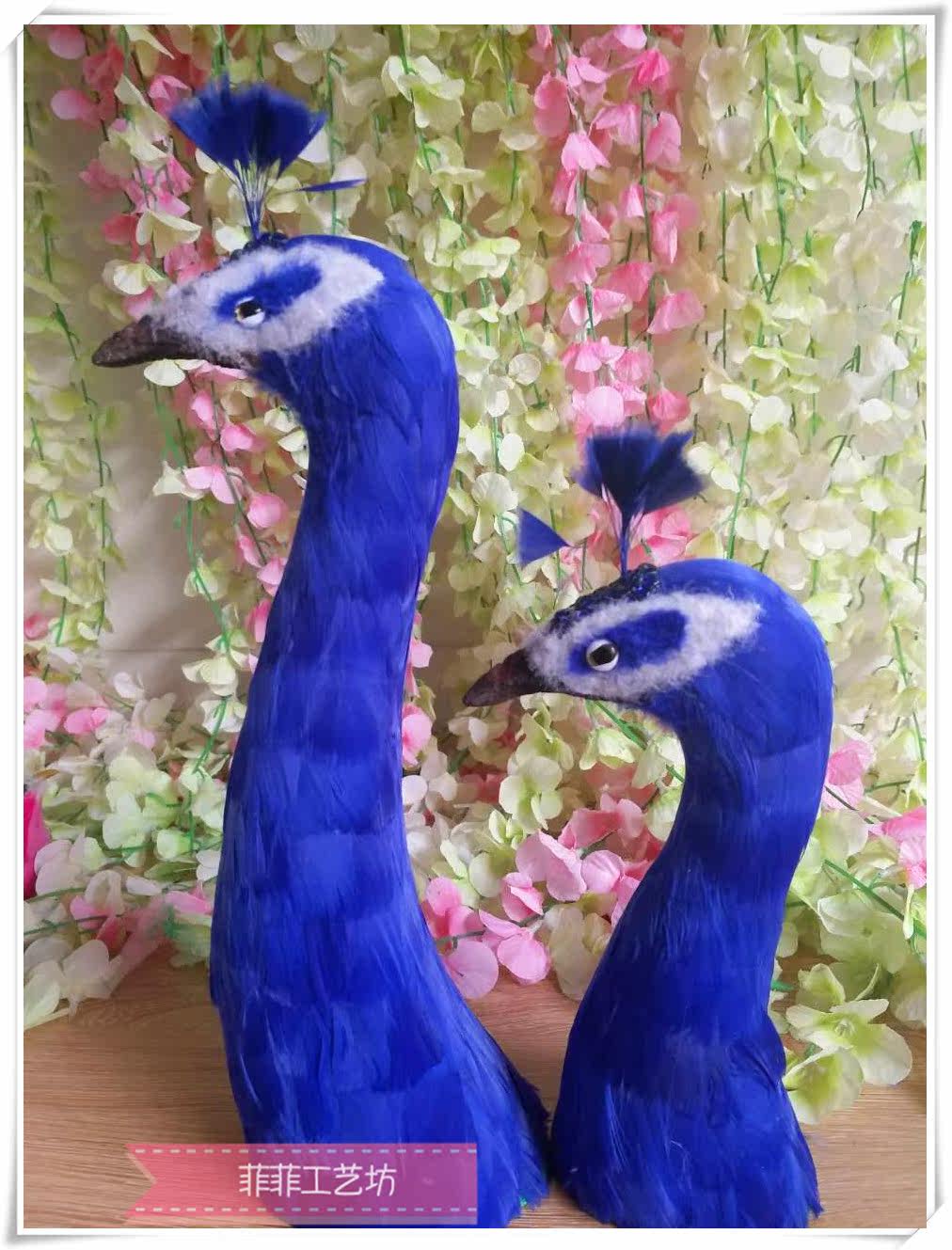 仿真孔雀头蓝色孔雀头孔雀宴摆件孔雀头模型羽毛孔雀头孔雀头摆件