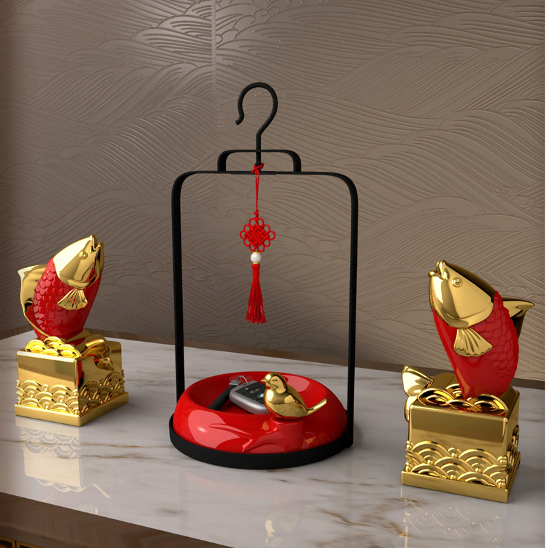 创意新中式摆件家居装饰品玄关电视柜鱼跃龙门高端乔迁开业送礼
