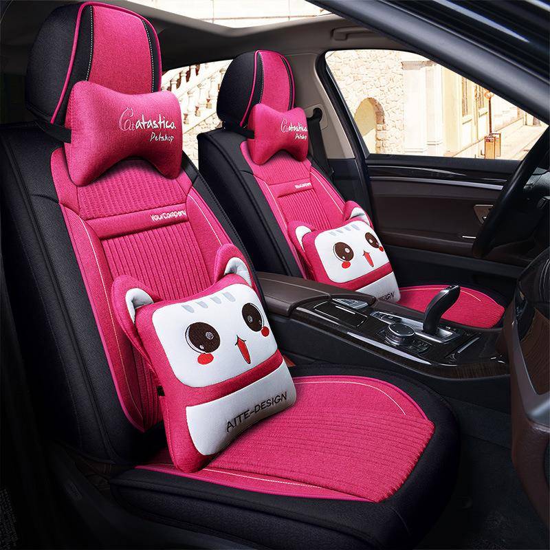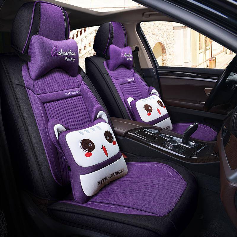 汽车坐垫新款四季通用小车麻布艺座套车坐套全包围卡通女专用座套