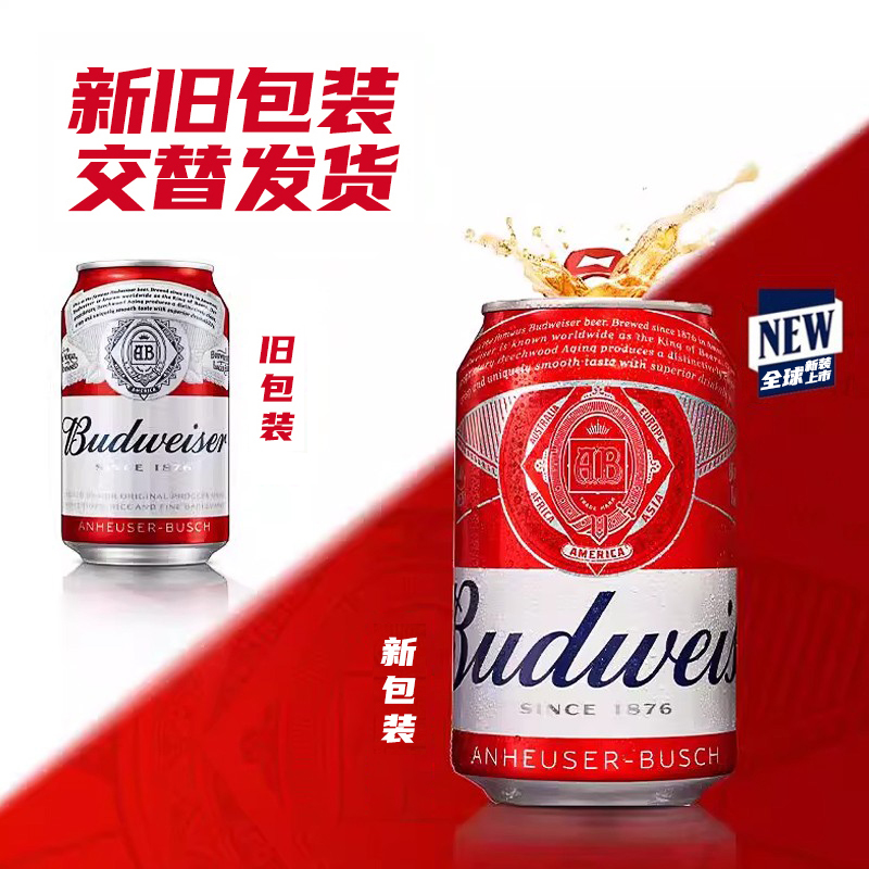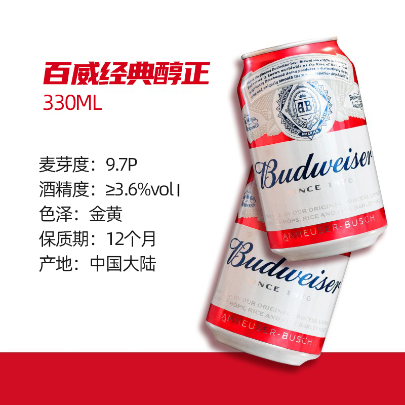 Budweiser百威啤酒经典醇正小麦淡色拉格啤酒330ml6听12听/24罐装