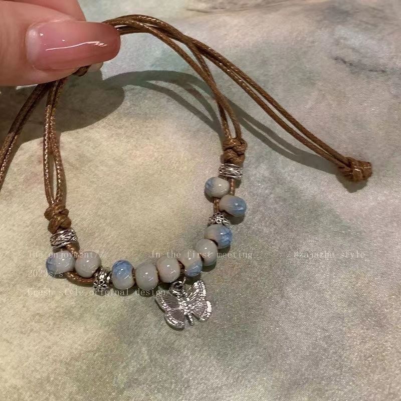 中式蝴蝶景德镇陶瓷手链女串珠编织夏2024新款复古国潮民族风手饰