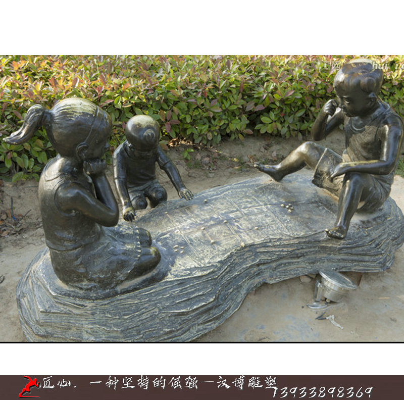 玻璃钢仿铜雕塑定做大型公园景观装饰下棋老头雕塑制作人物铜雕
