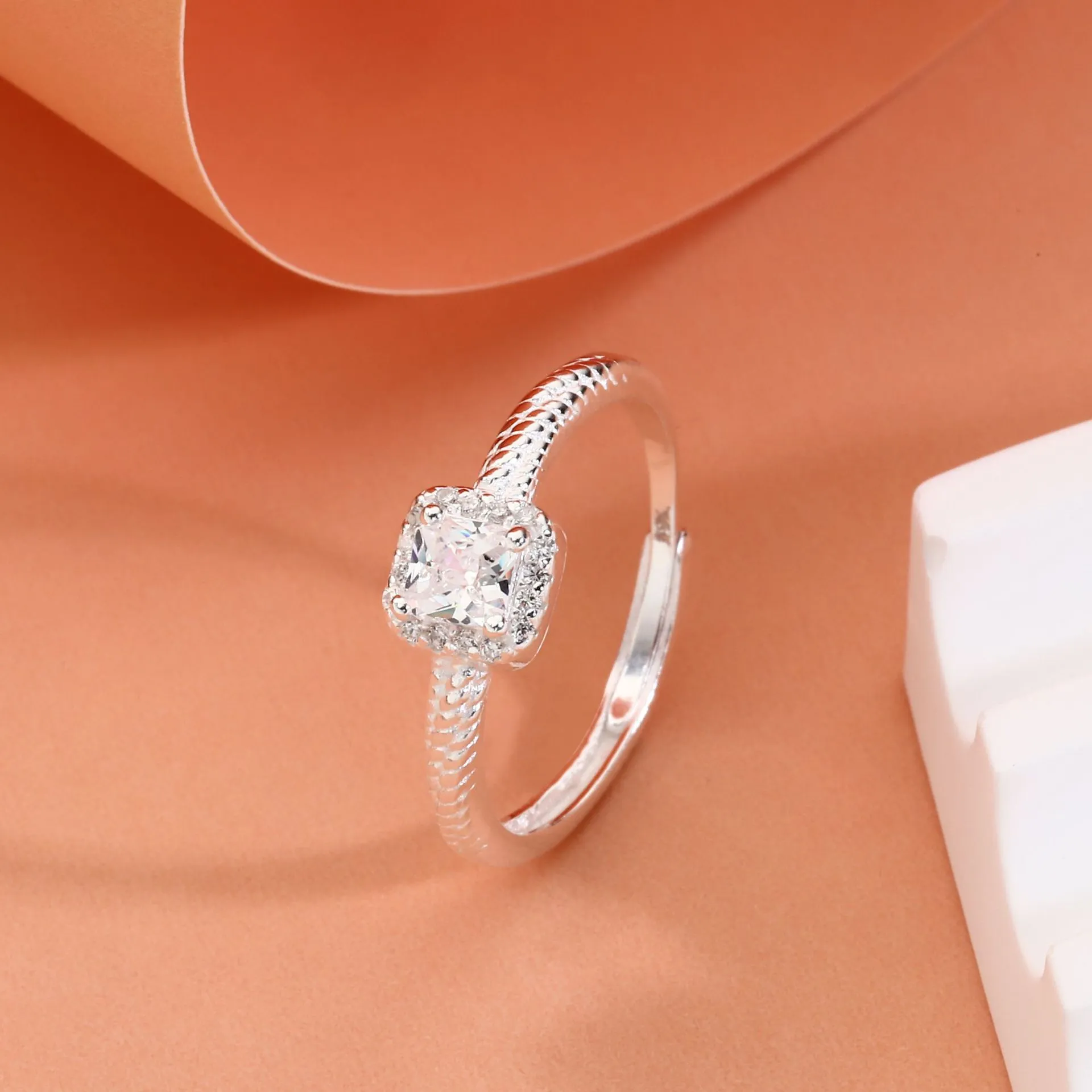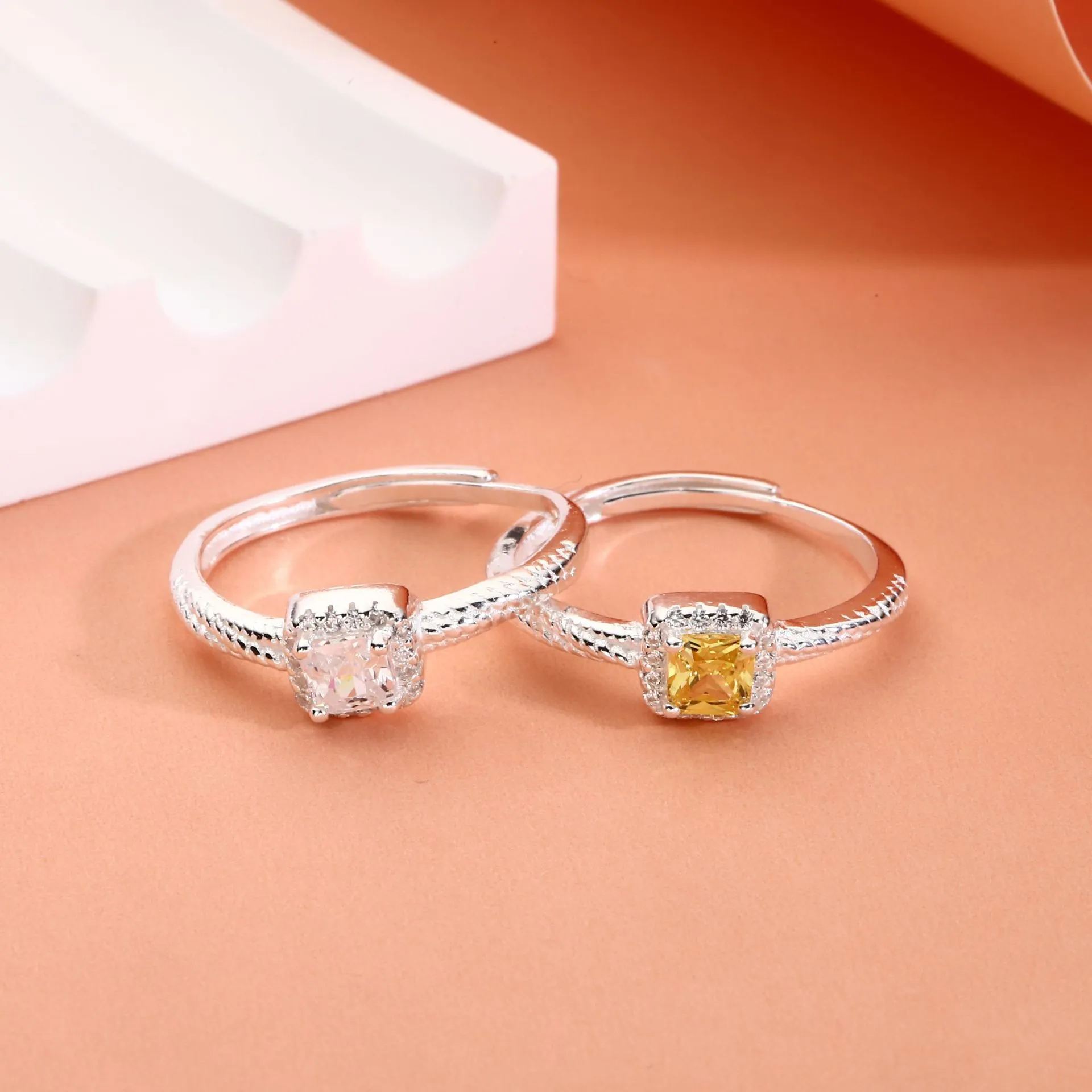 8605号足银990黄色锆石小方糖戒指纯银小众轻奢超闪麻花食指戒