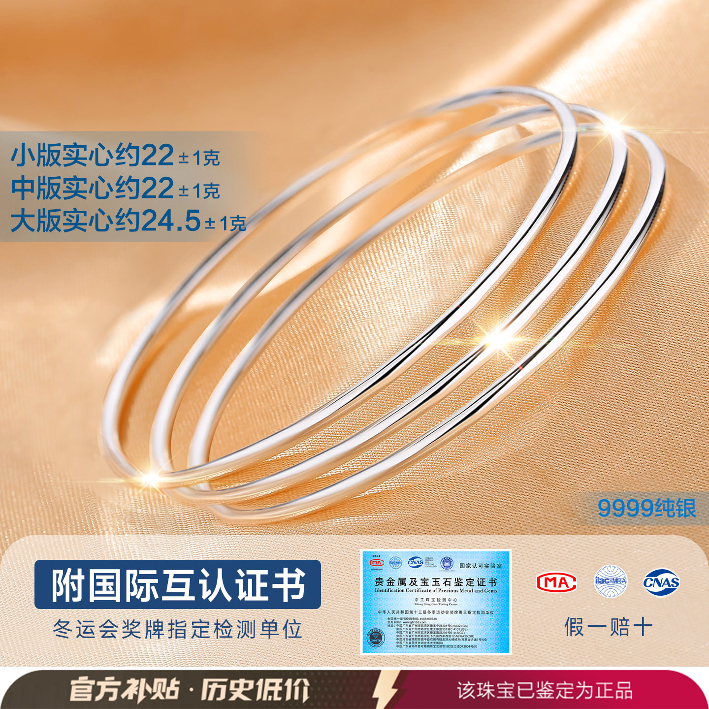 9999纯银手镯女999纯银足银三生三世银镯子实心素圈手环女款女士