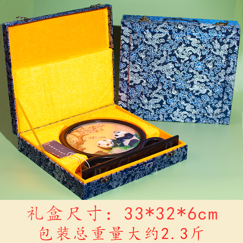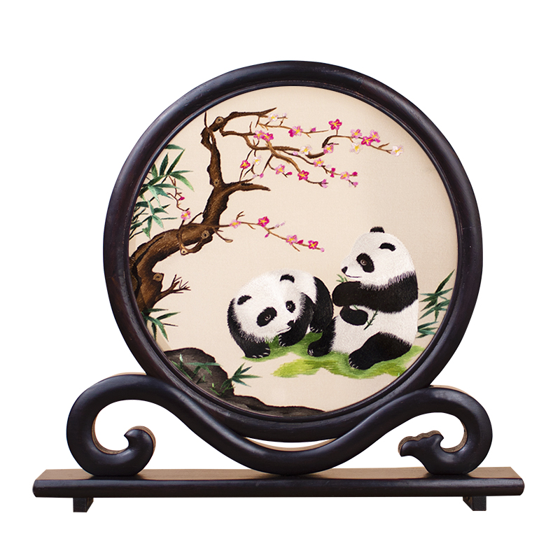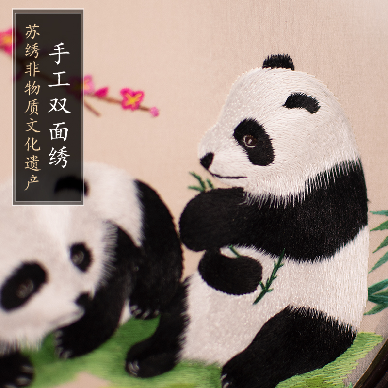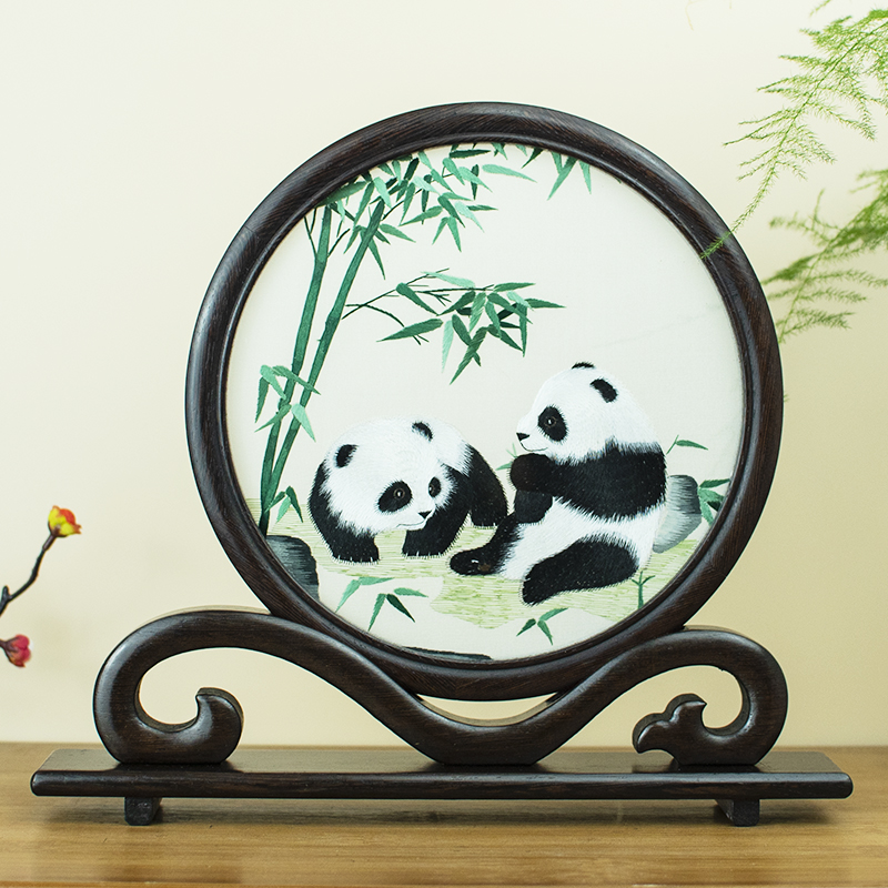 刺绣摆件手工双面苏绣摆台中国风工艺品小摆件新中式桌面熊猫礼品