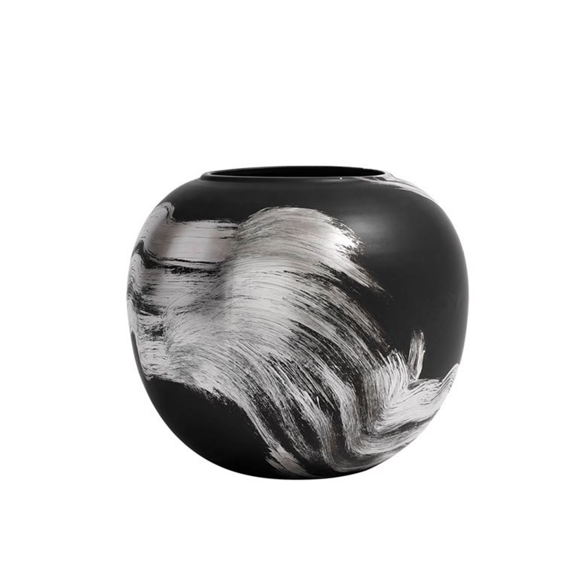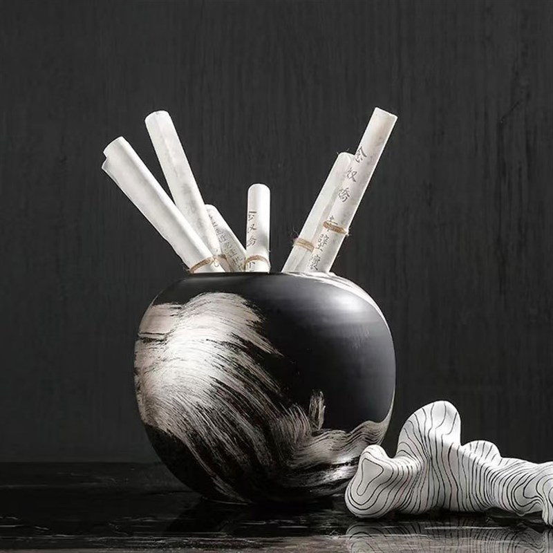 新中式黑色水h墨花瓶样板房酒店书柜茶几桌面玄关黑白花器软装摆