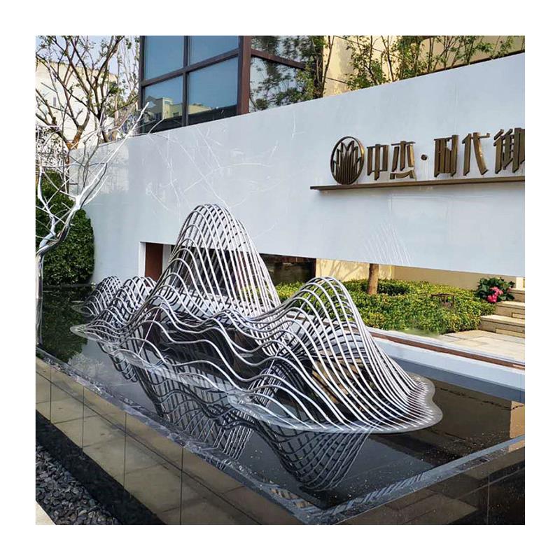 户外不锈钢镜面镂空假山雕塑酒店地产水景装饰售楼部水池造景摆件