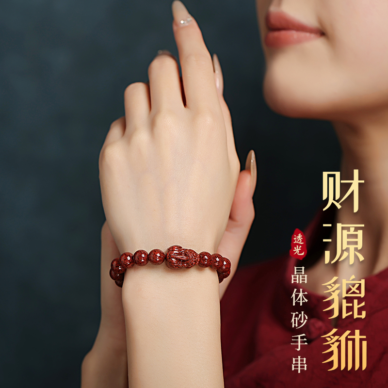 原矿朱砂貔貅手串原石晶体砂手链男女款全透光蛇年本命年饰品礼物