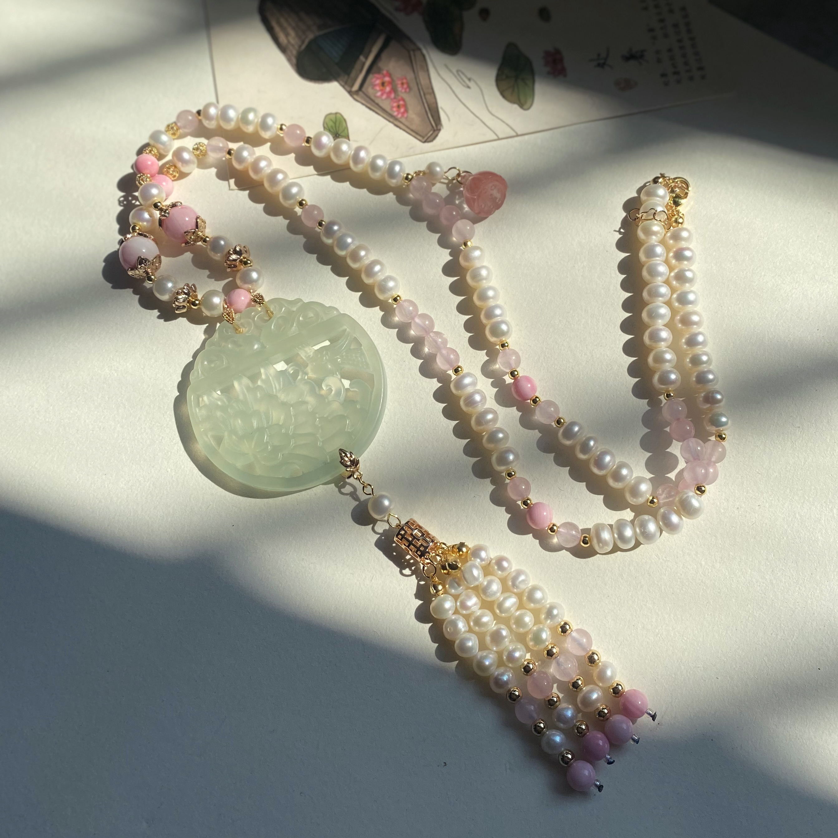 茹何手作原创天然石女皇贝项链汉服岫玉软璎珞清新百搭明制首饰