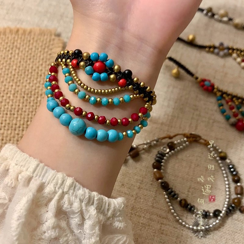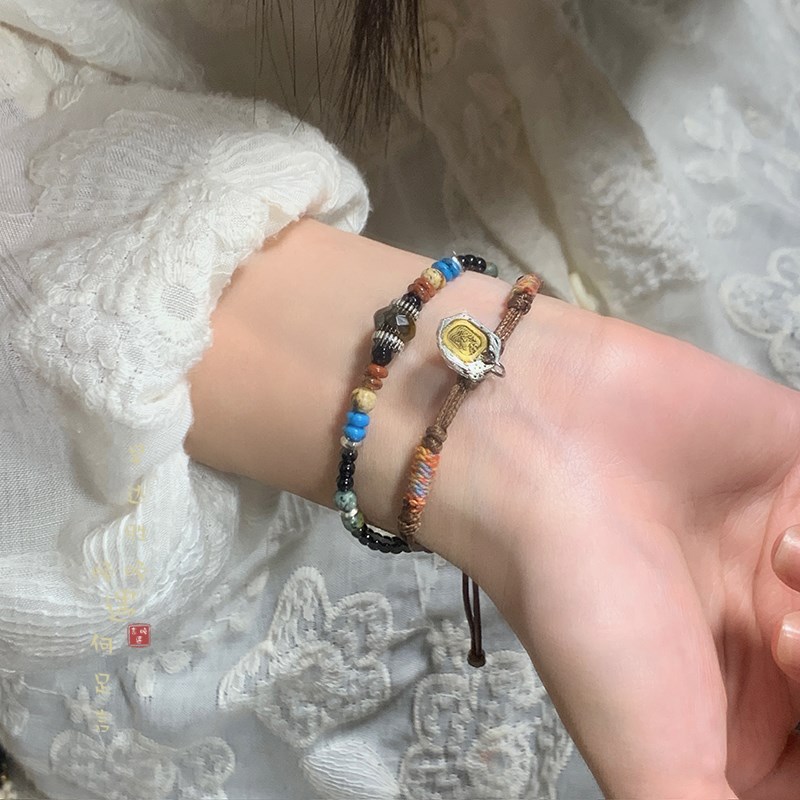 [向阳]民族风陶瓷串珠编织绳y手链女新中式小众高级感手串手饰品