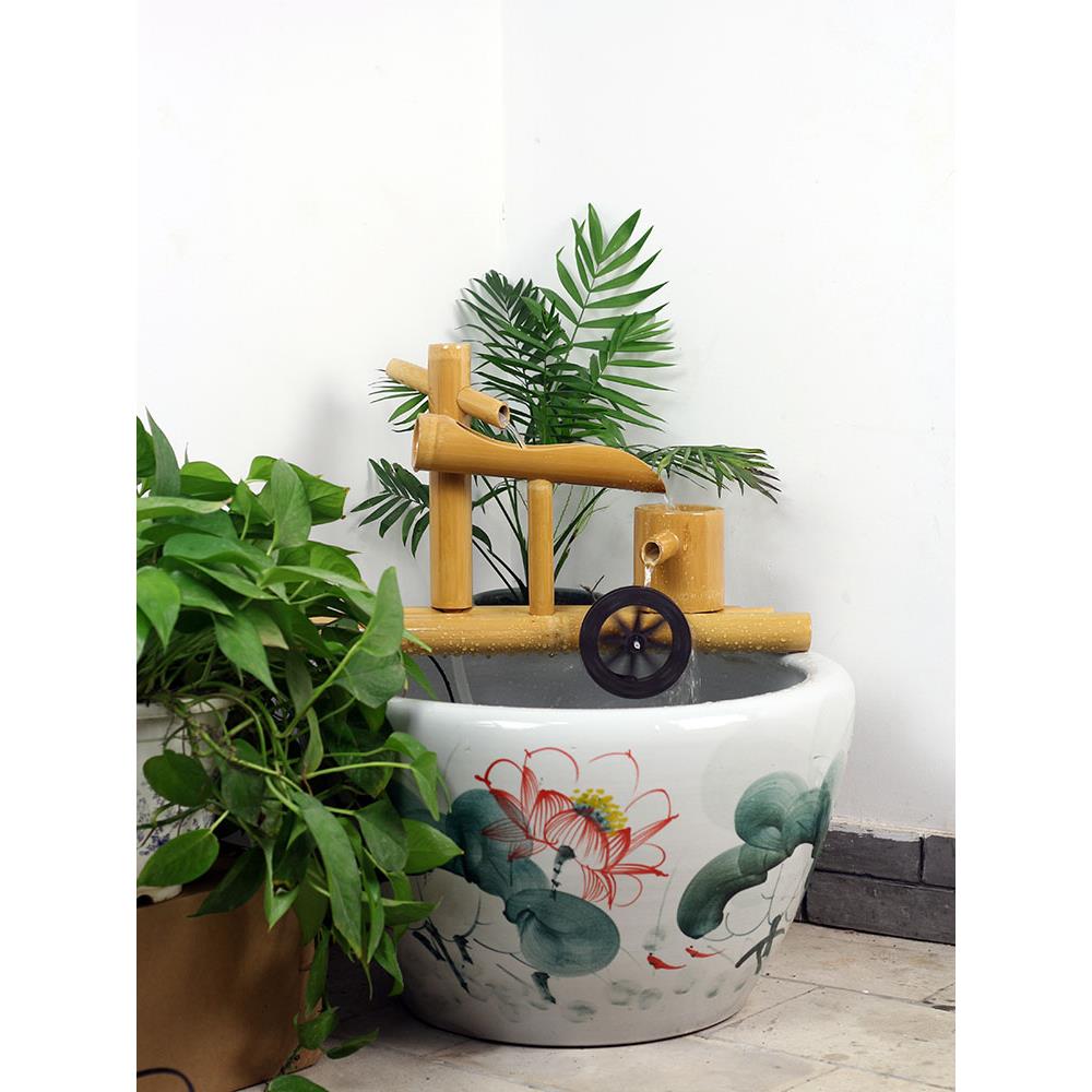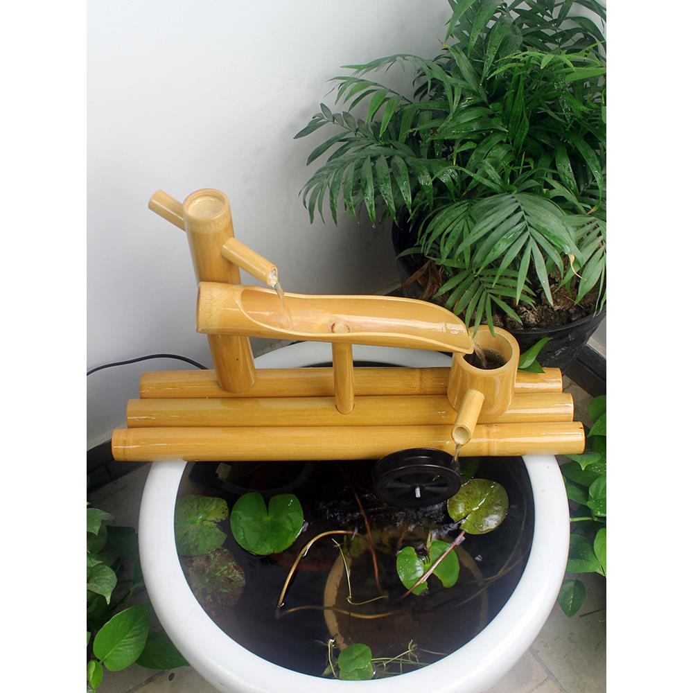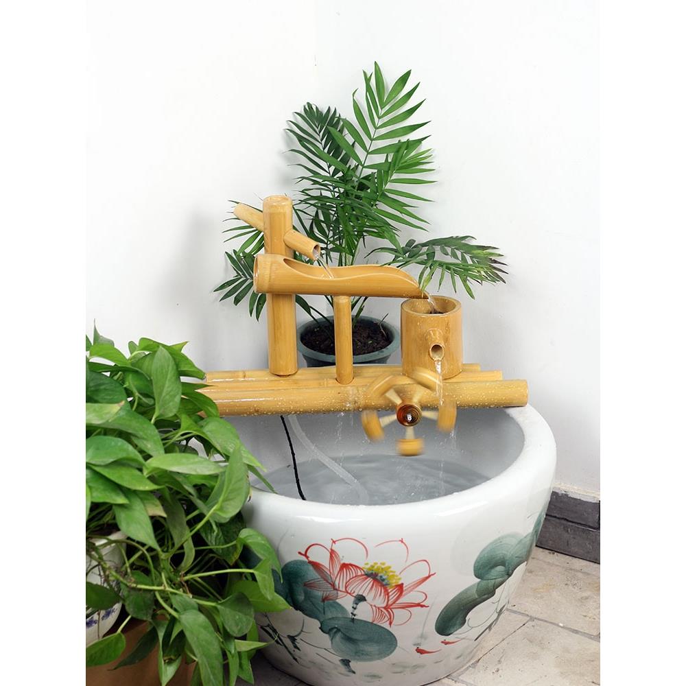 竹子流水器 鱼缸石槽鱼盆增氧过滤 客厅摆件 风水轮水车循环流水