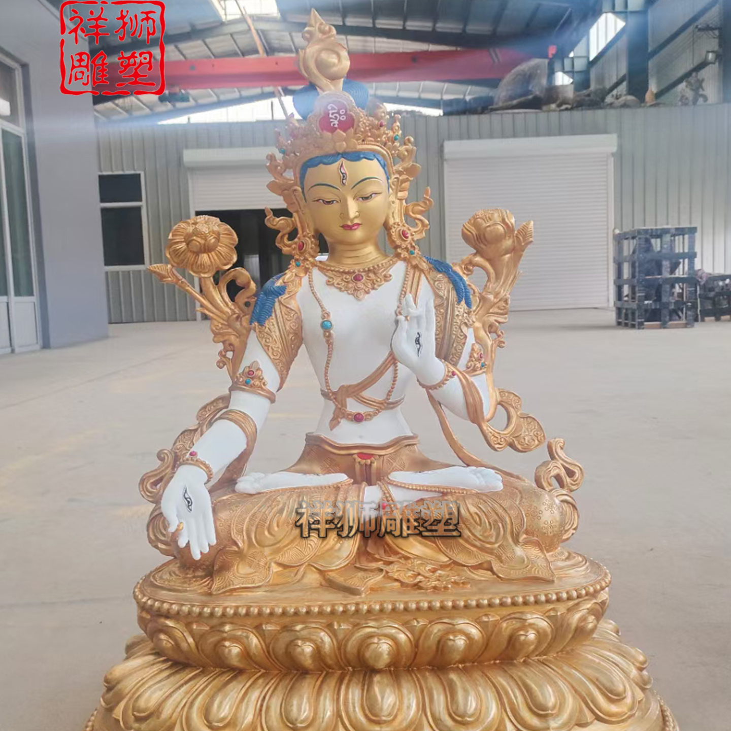 藏传铜佛像厂家黄铜鎏金白度母佛像铸造小型39厘米铜像摆件定制款