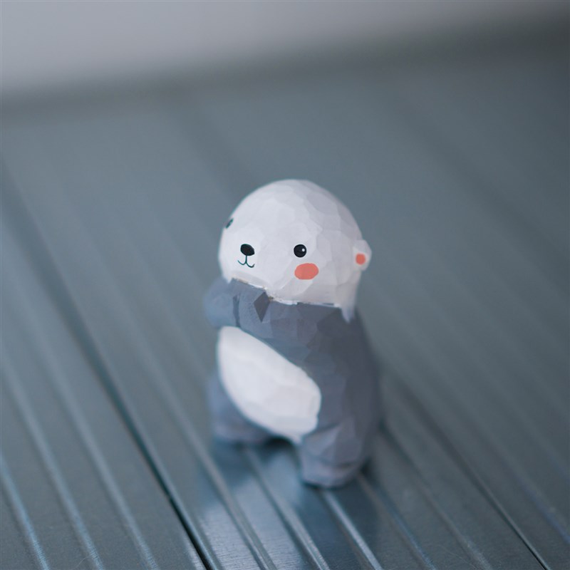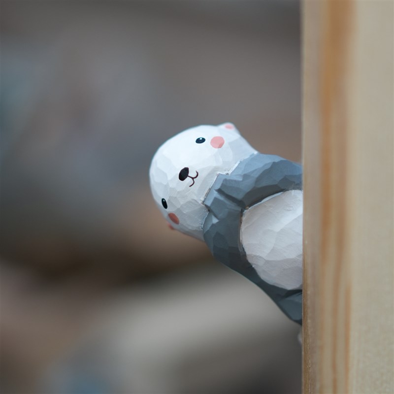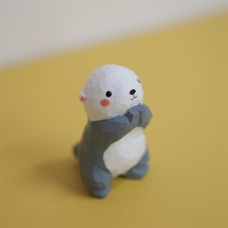 木刻自习室木雕海獭n可爱桌面摆件雕刻工艺品书房办公区小摆设送