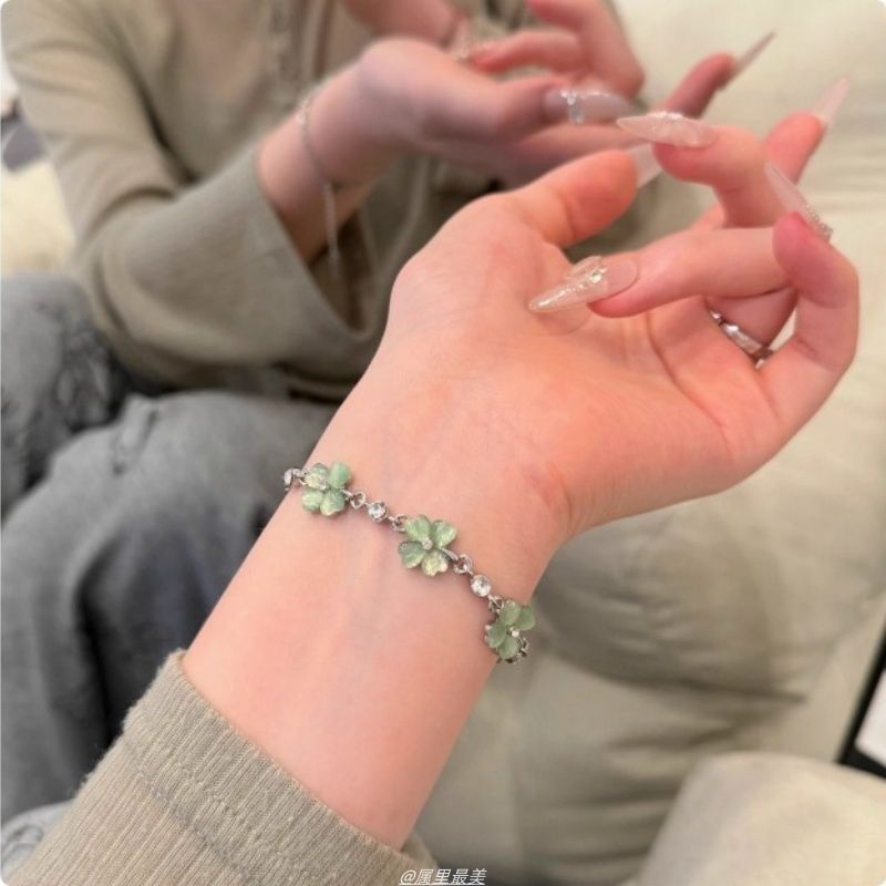幸运草绿色四叶草猫眼石手链女高级简约小众设计感轻奢气质饰闺蜜