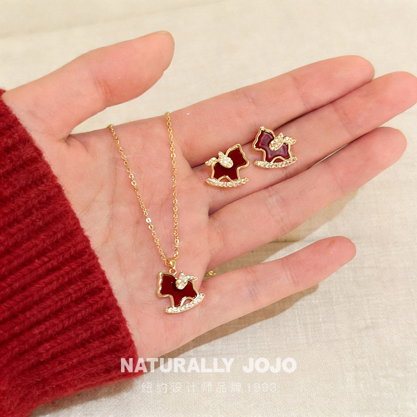 马上有钱本命年生肖马新年红色吊坠项链女镀18K真金锁骨链新中式