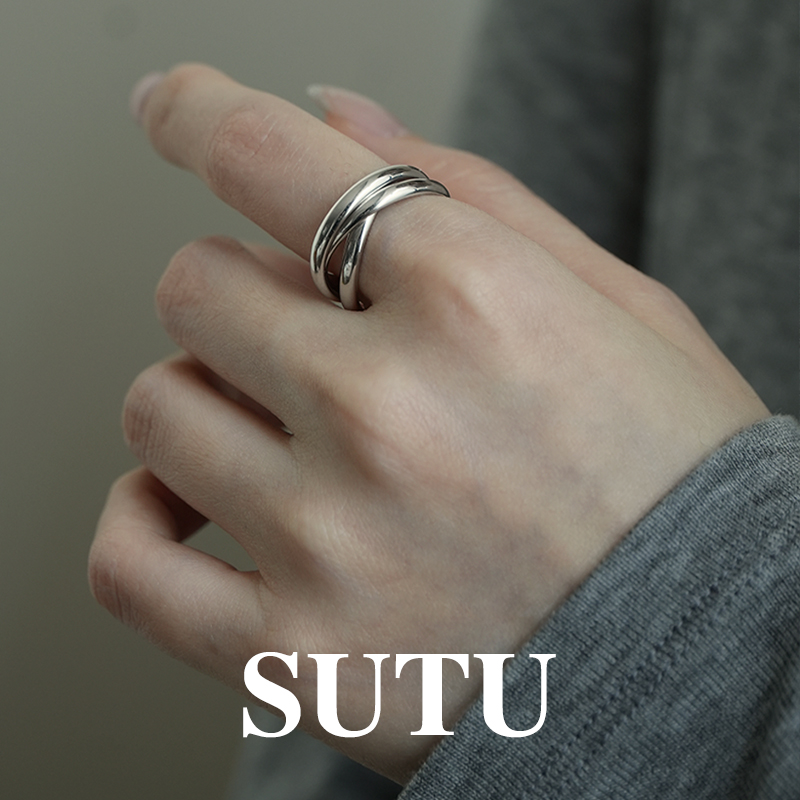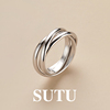 素图三环戒指925银简约气质轻奢指小众设计高级感食指中指戒饰品