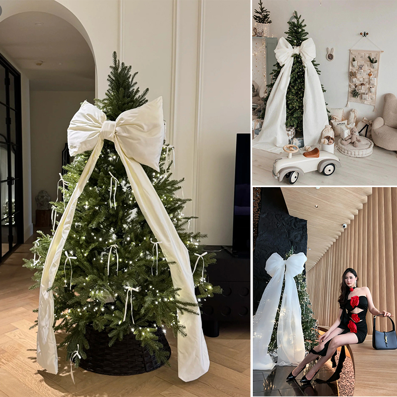 圣诞节冬日大拖尾蝴蝶结网红色打卡摆件橱窗布置装饰拍照道具