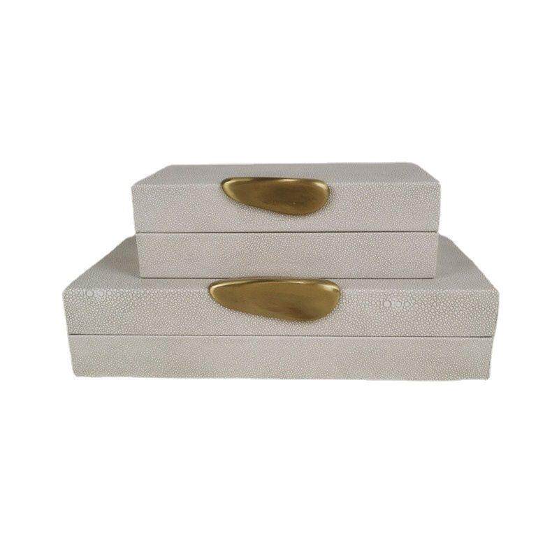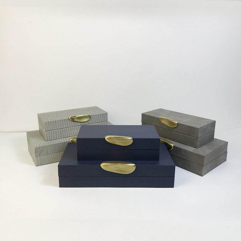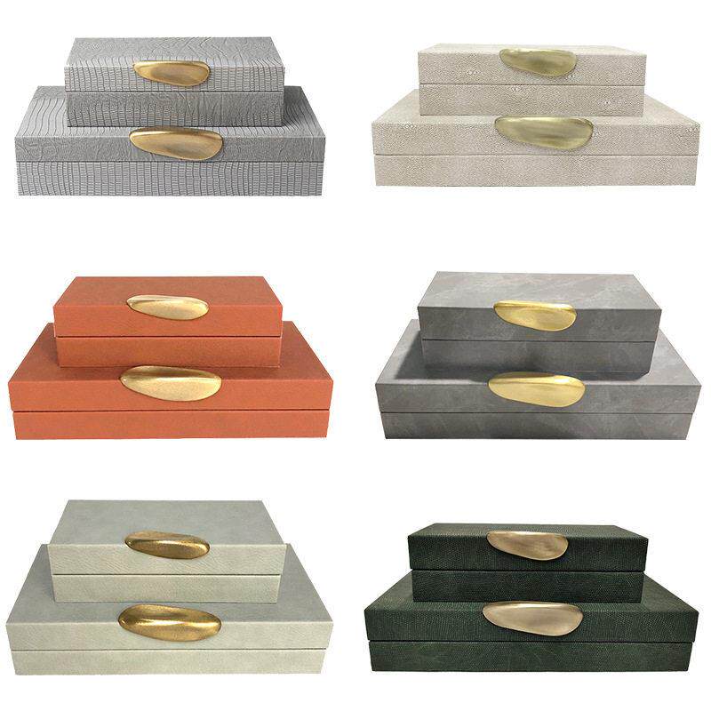 现代家居轻奢软装饰品样板房间卧室化妆台皮质灰色收纳首饰盒摆件