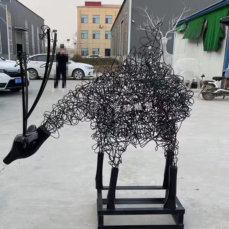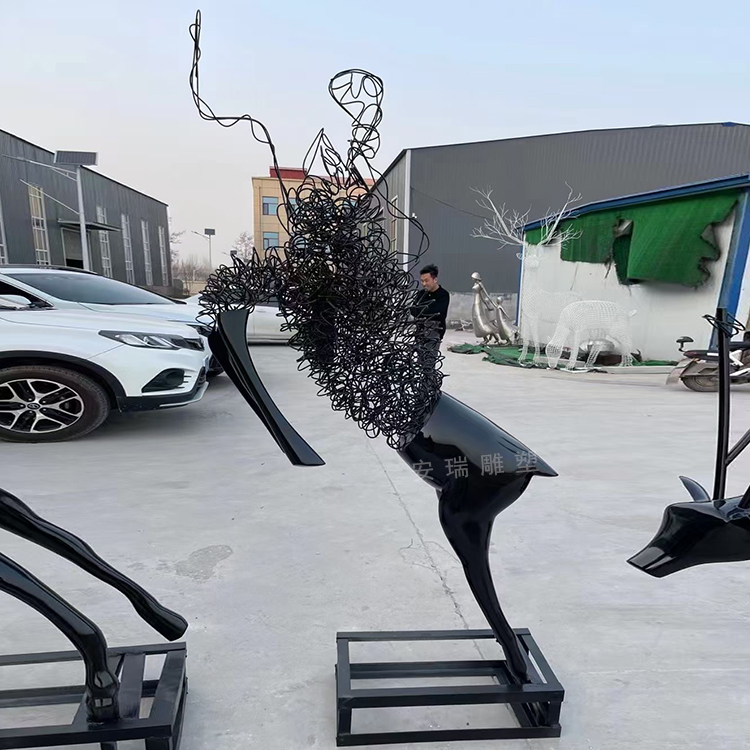 不锈钢抽象小鹿户外公园园林景观摆放金属铁艺艺术几何鹿动物雕塑
