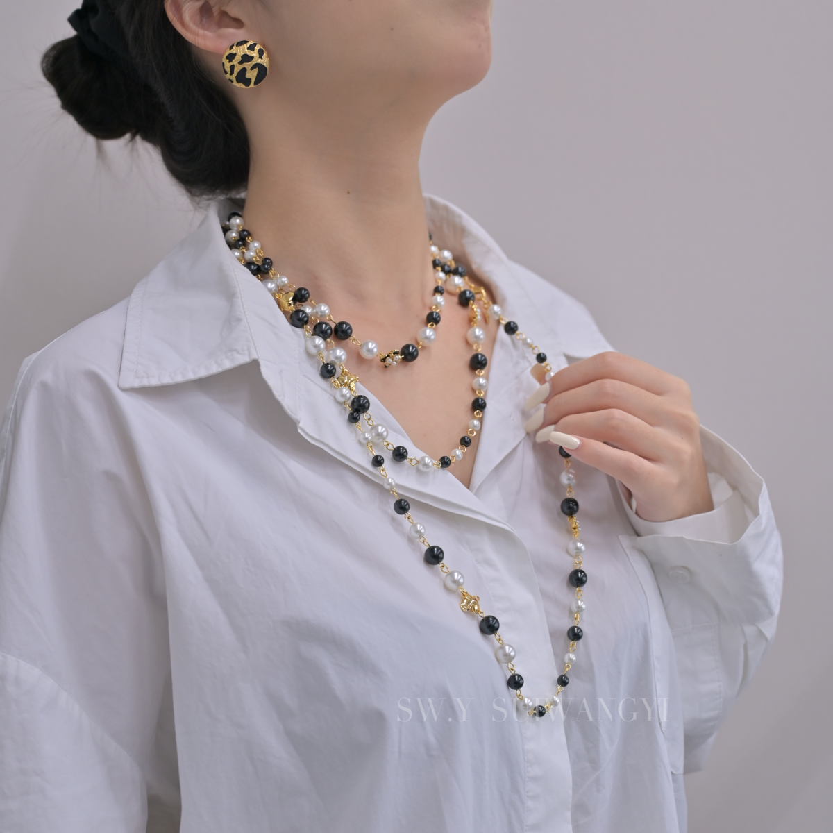 SWY乱世佳人珍珠项链毛衣链女小众轻奢高级感串珠气质锁骨链长链