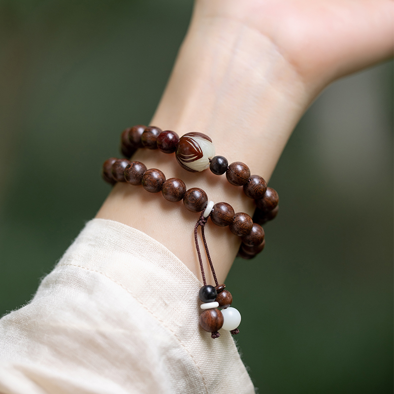 复古金丝檀木女森系学生手链情侣檀香手串天然中国风佛珠抛光现货