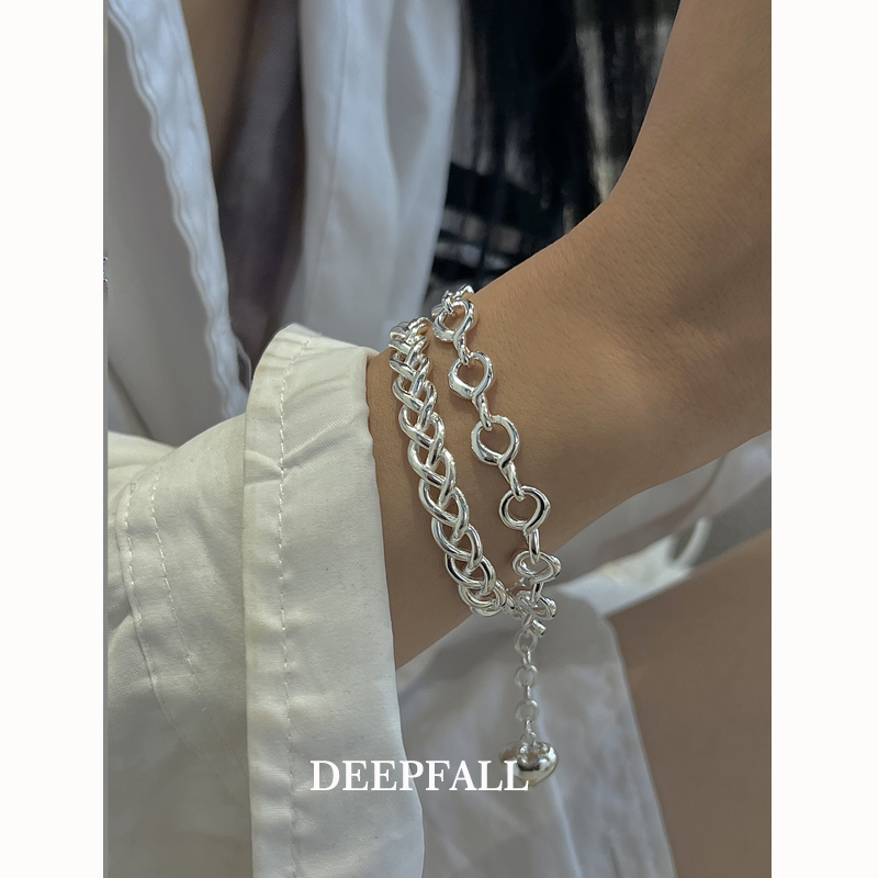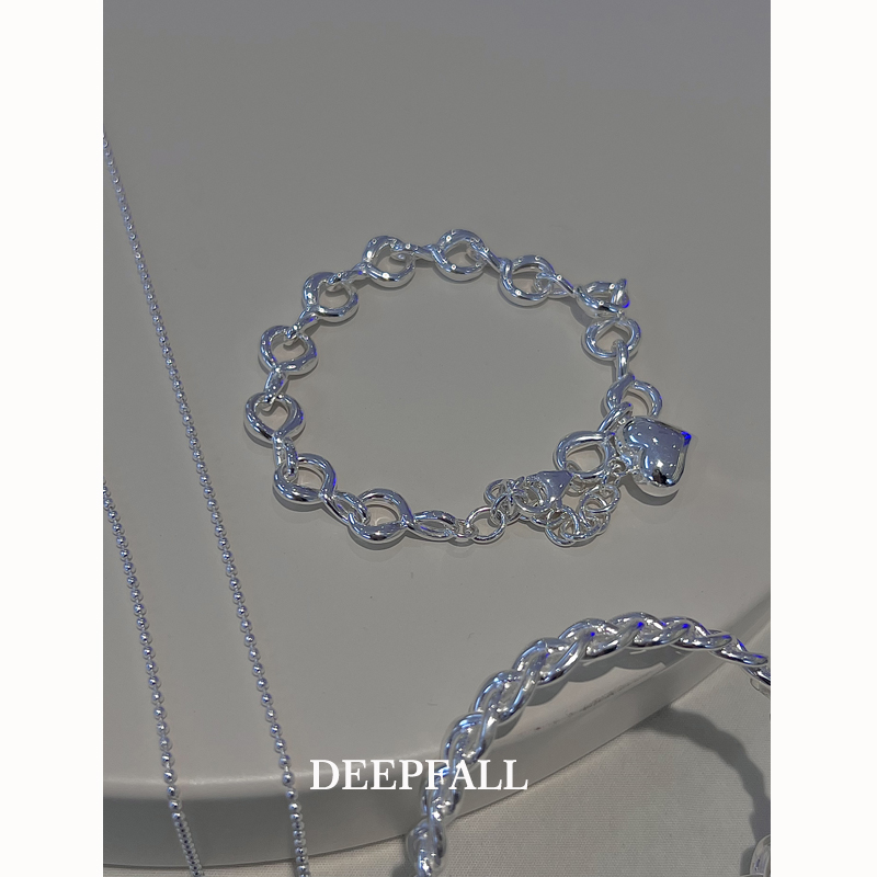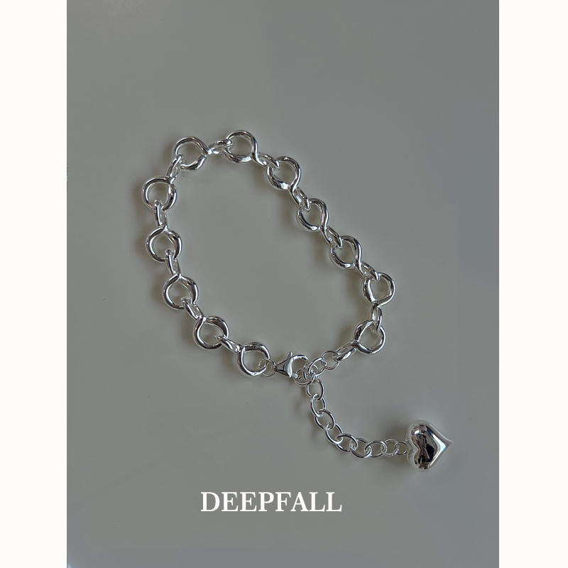DEEPFALL 小众设计感 S925纯银链条圈圈爱心手链 亮银ins风饰品女