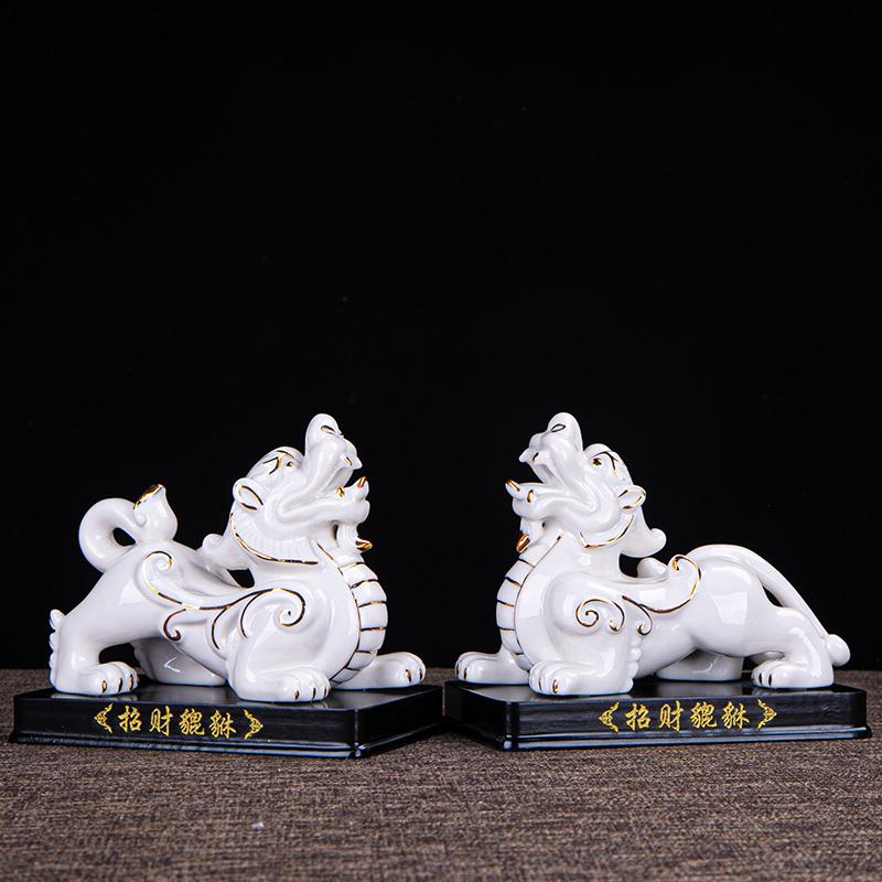 默临 陶瓷黄色貔貅摆件一对招财镇宅聚财客厅店铺家居办公室皮丘