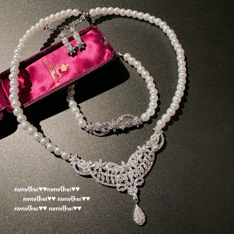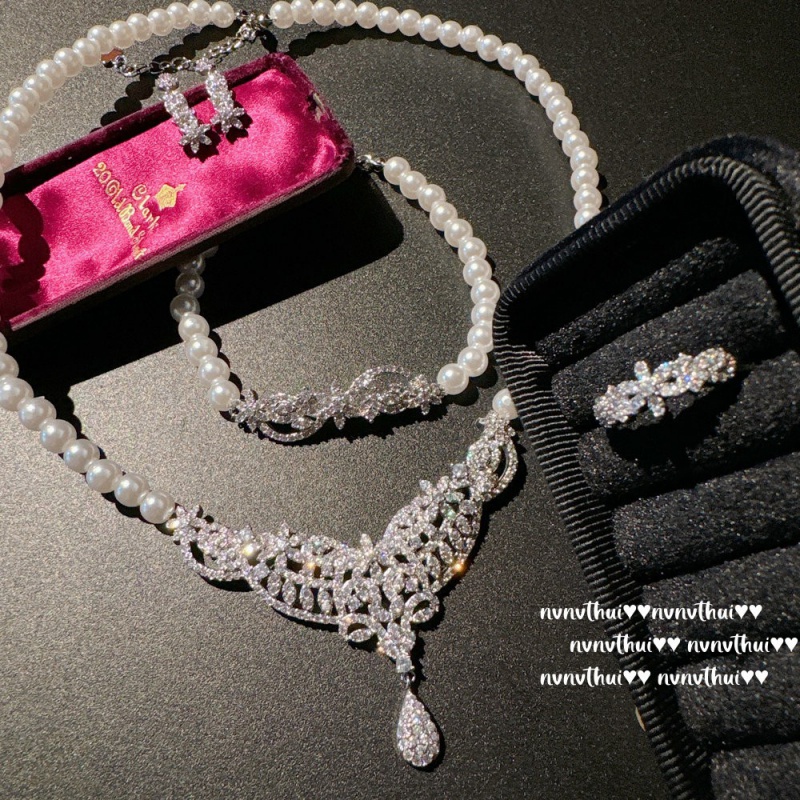 意大利复古蜂巢雕花宝石珍珠项链 Vintage 镀18K金 贝珠锆石手链