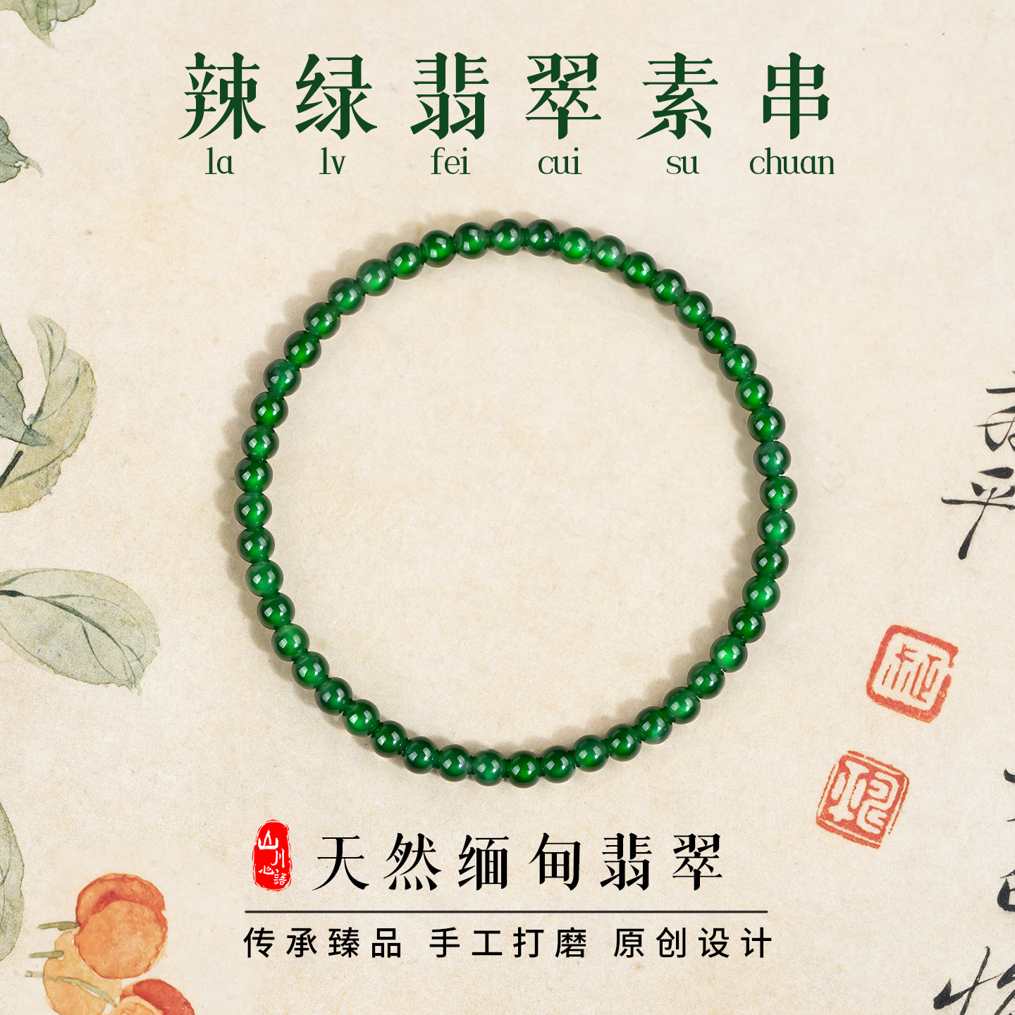 天然辣阳绿缅甸翡翠小米珠手串冰种玉石招财转运4mm串珠手链女款