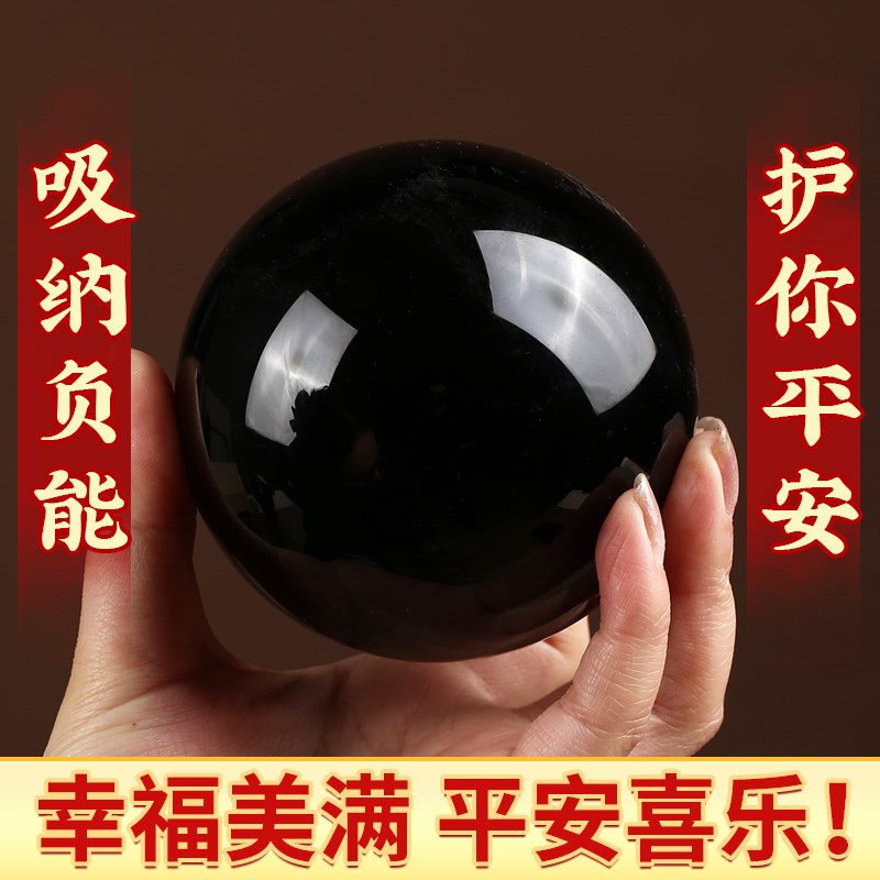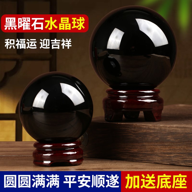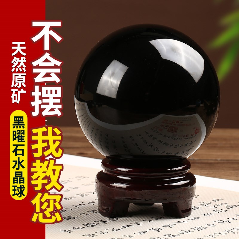 黑曜石水晶球招财l摆件黑色原手工打磨卧室客厅办公室玄关乔迁礼