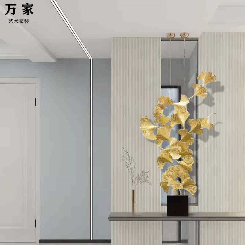 现代简约创意金属银杏叶铁艺x家居装饰品立体桌面摆件客厅酒店软