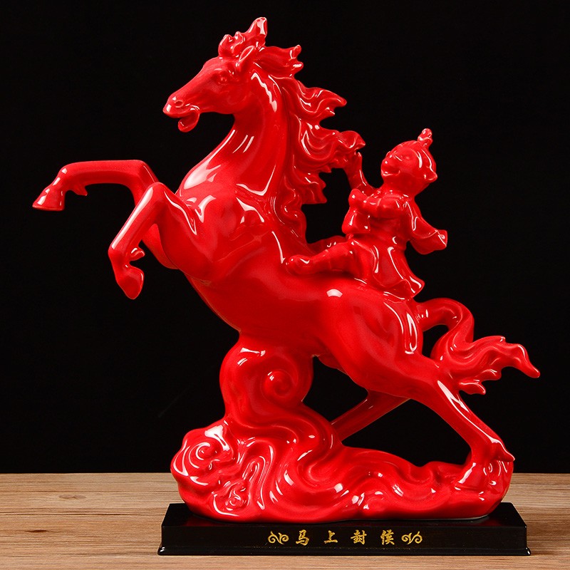 马上封侯摆件猴陶瓷工艺品办公室家居装饰品红色十二生肖马摆件