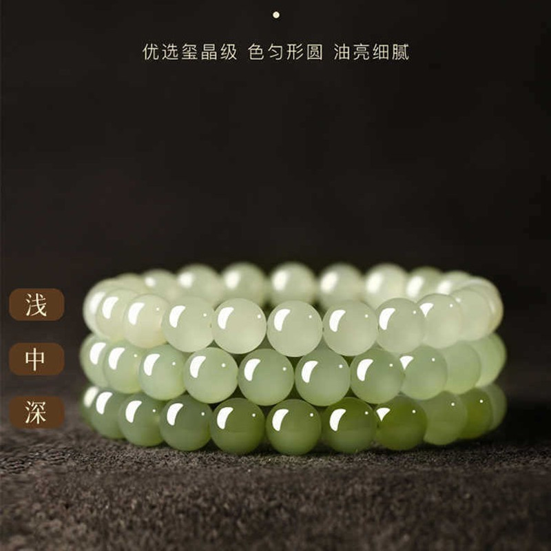 和田玉髓手串冰种晴水手链女高级感转运珠玉石串珠碧玉绿色手饰