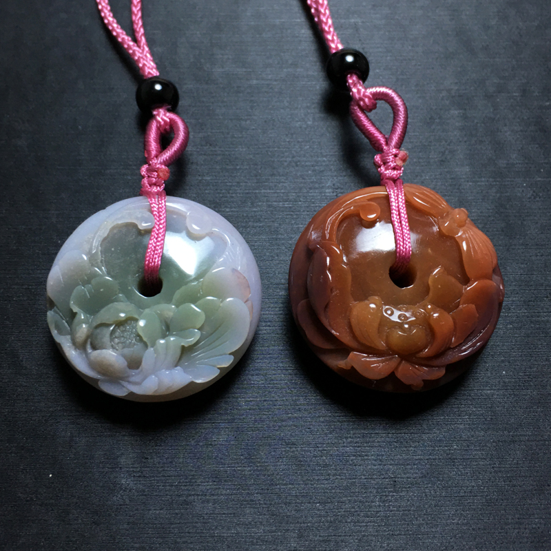 天然老料俏色盐源玛瑙平安扣吊坠糖果色满肉精雕雕刻手链配饰女