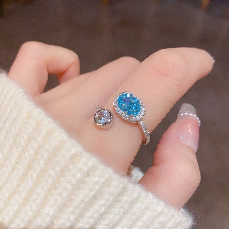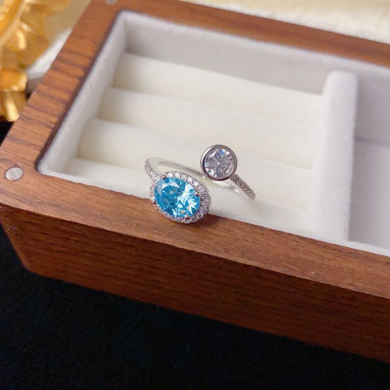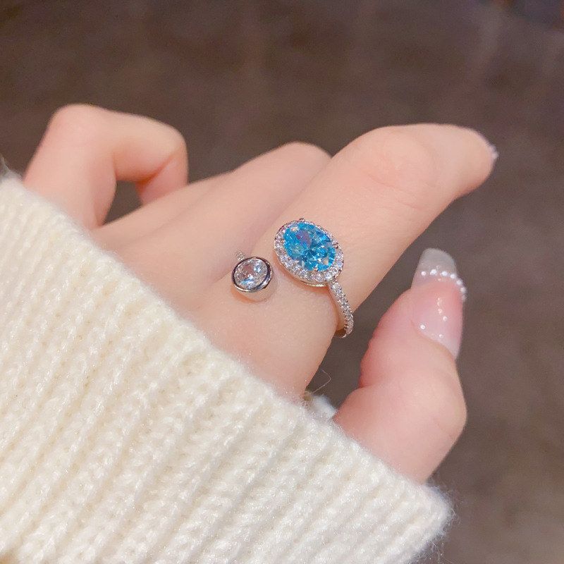 小众时尚简约银色满钻蓝色开口戒个性气质百搭高级感超闪指环批发