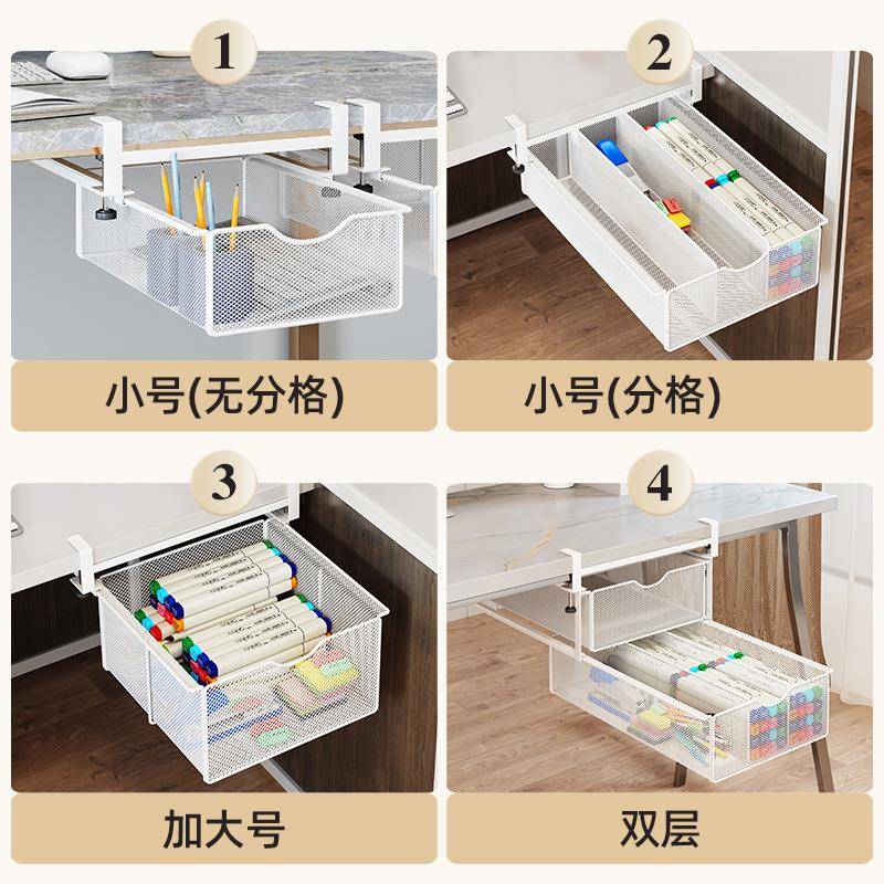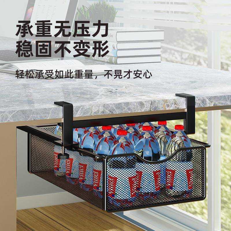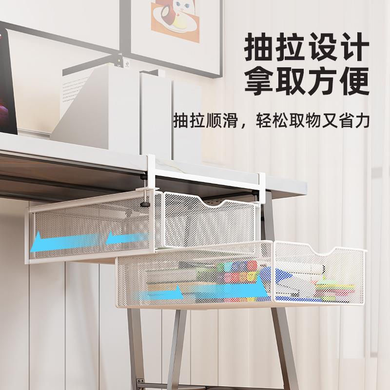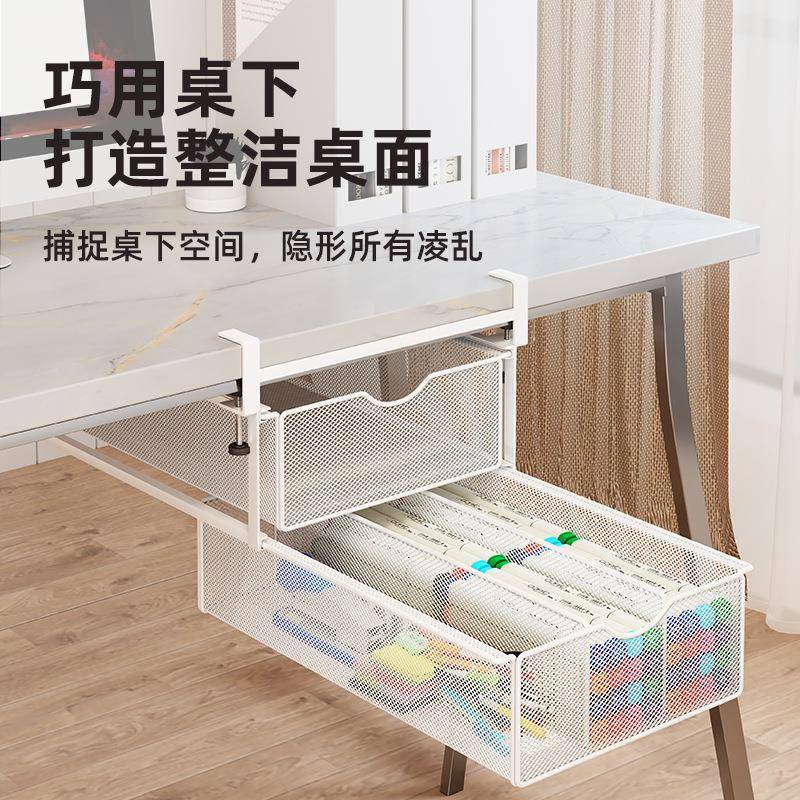 桌下抽屉收纳盒多层抽拉筐办公桌底神器整理文具文件置物架悬挂篮