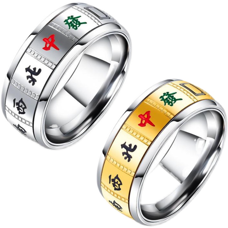 反光戒指男女打牌戒指创意个性麻将戒指潮酷时尚招财转运光面银色