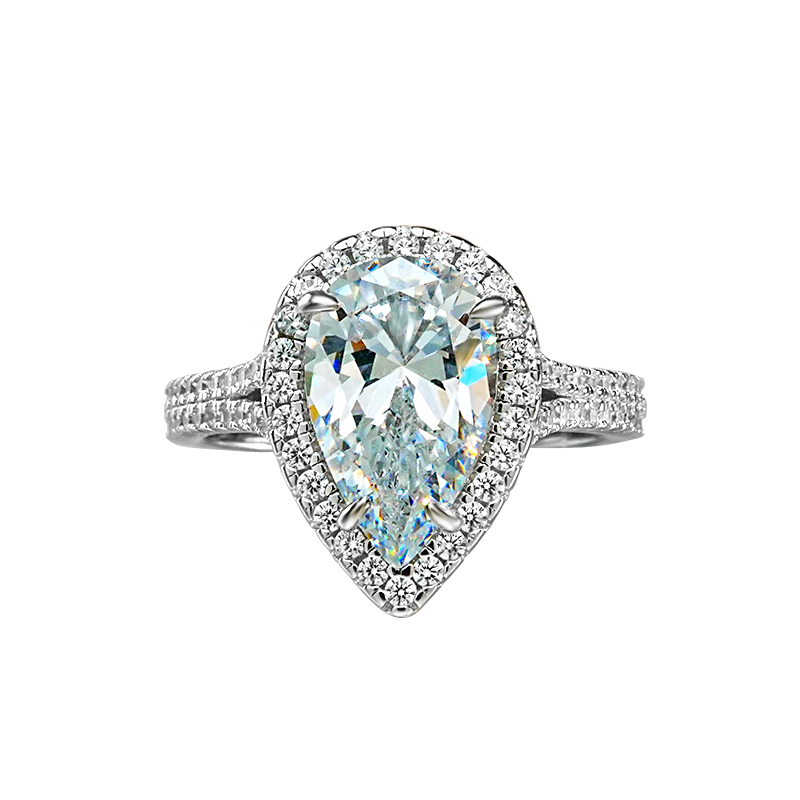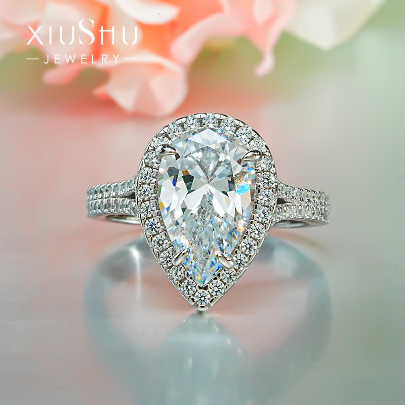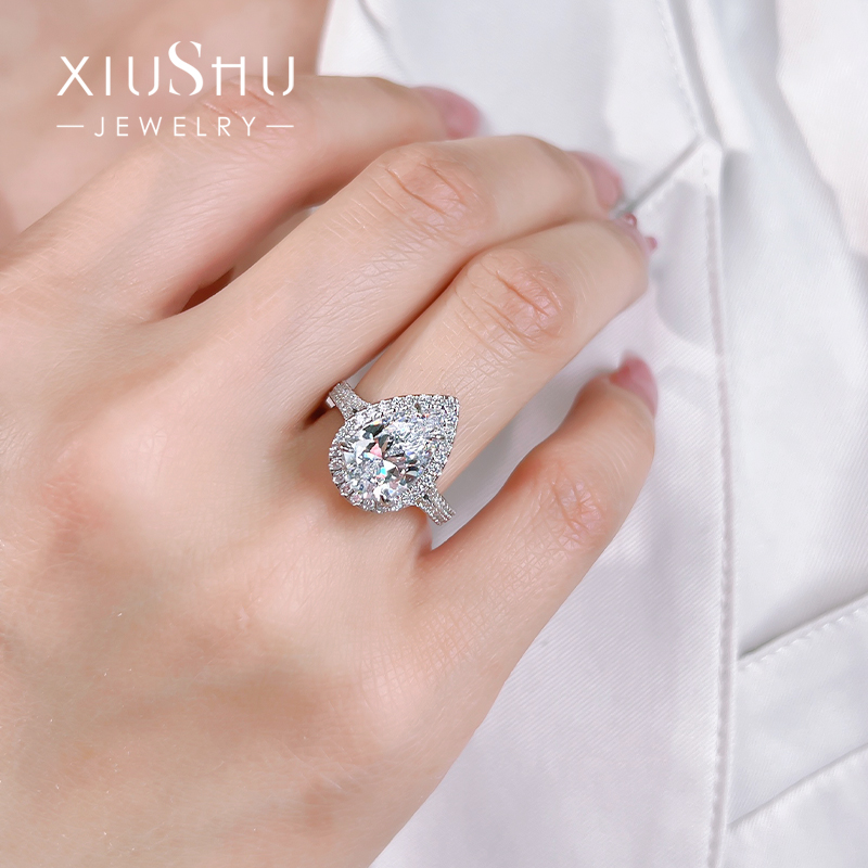 轻奢简约冰花切水滴白钻戒指女925银镶嵌高碳钻气质小众高级感