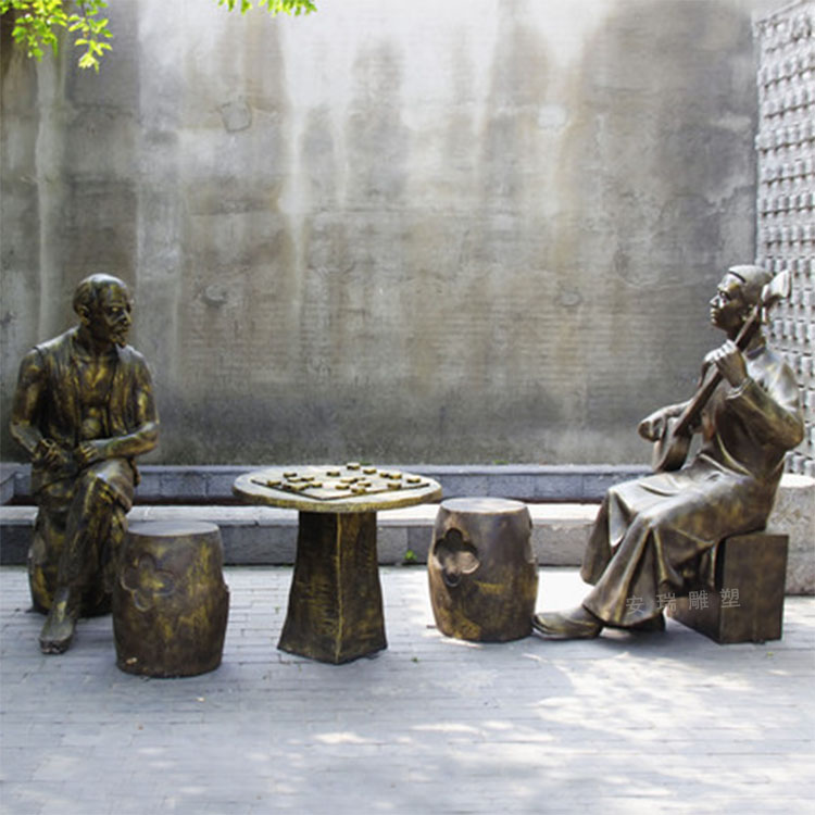 玻璃钢仿铜休息人物户外景区步行街摆放铸铜传统民俗小品人物雕塑