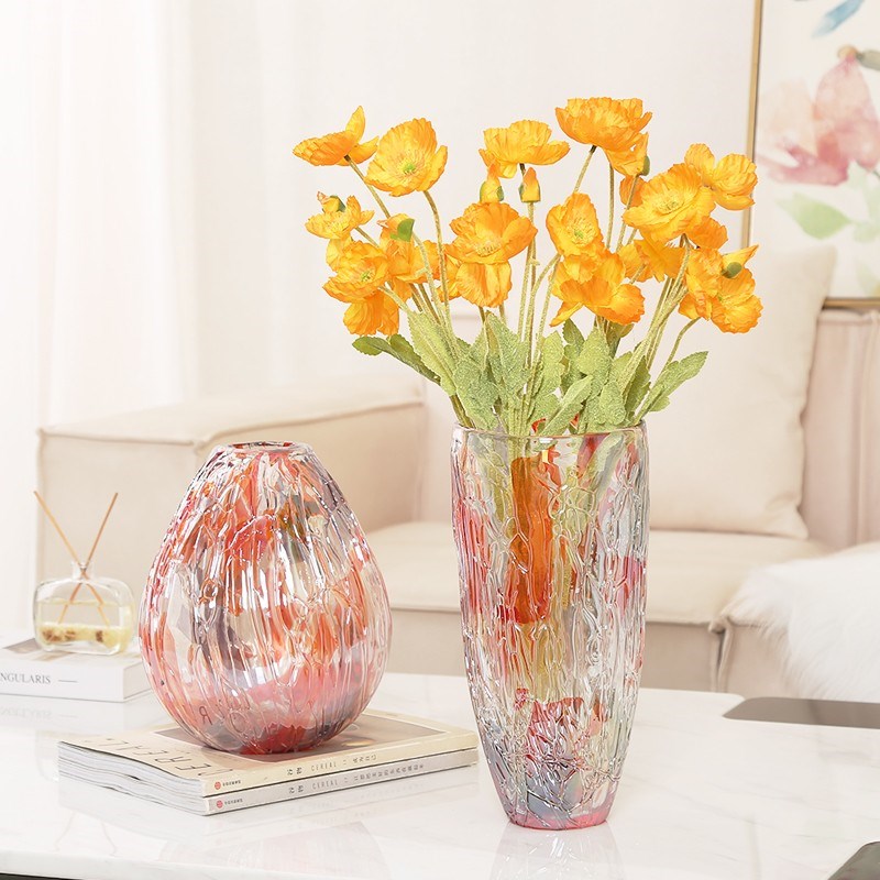 现代简约彩色玻璃花瓶客厅插花水培花器餐厅民宿样V板房大厅装饰