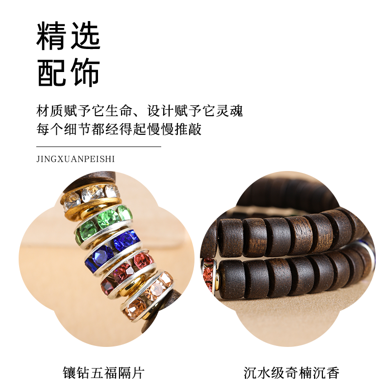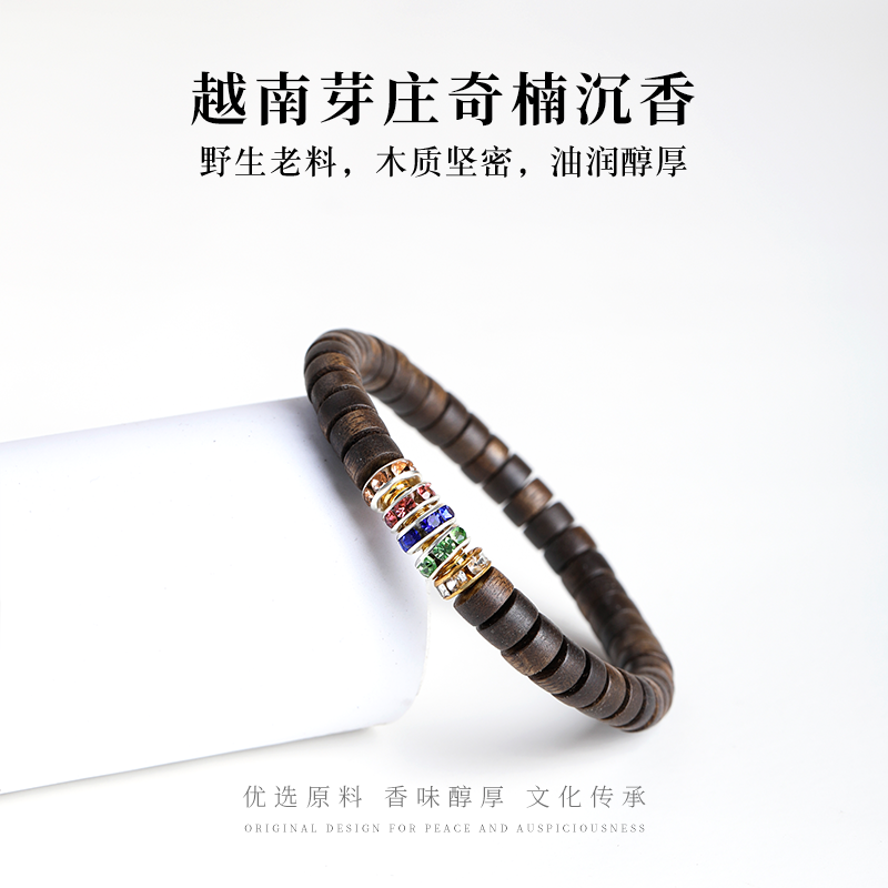 木香传天然越南芽庄奇楠沉香全沉水五福转运珠情侣手链手串节日礼