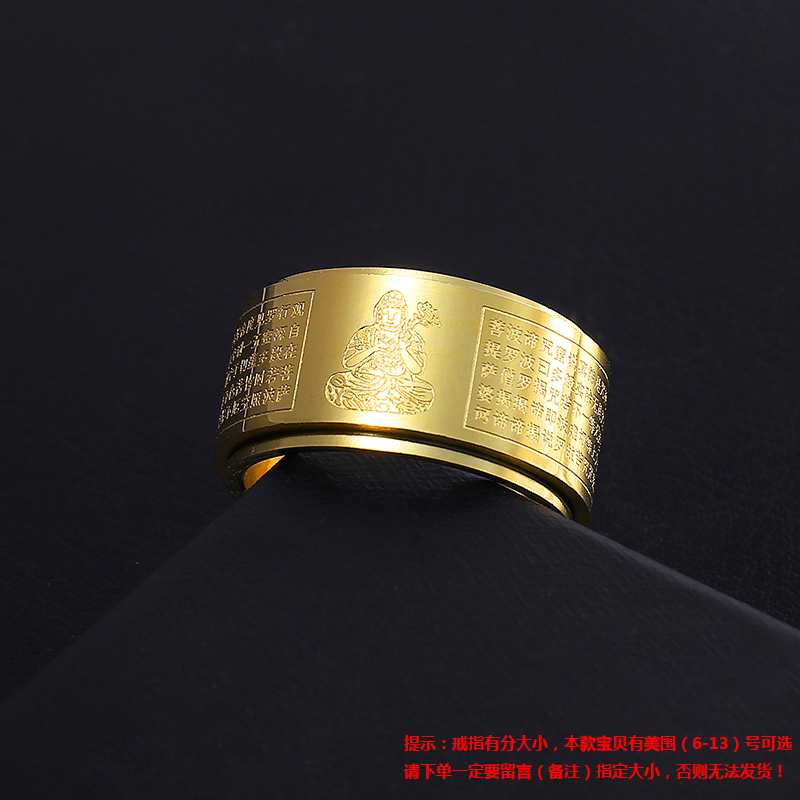 佛家转动款d本命佛生肖守护神心经戒指钛钢转运食指指环免费刻字