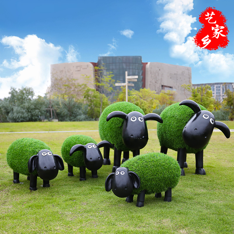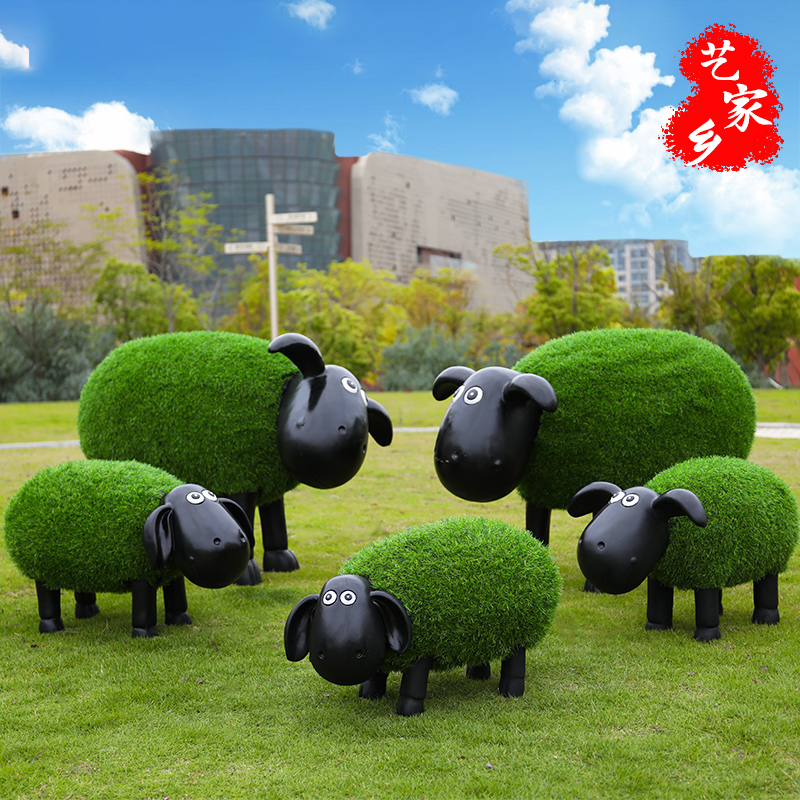 花园庭院装饰户外卡通动物玻璃钢雕塑草坪园林景观草皮植绒羊摆件