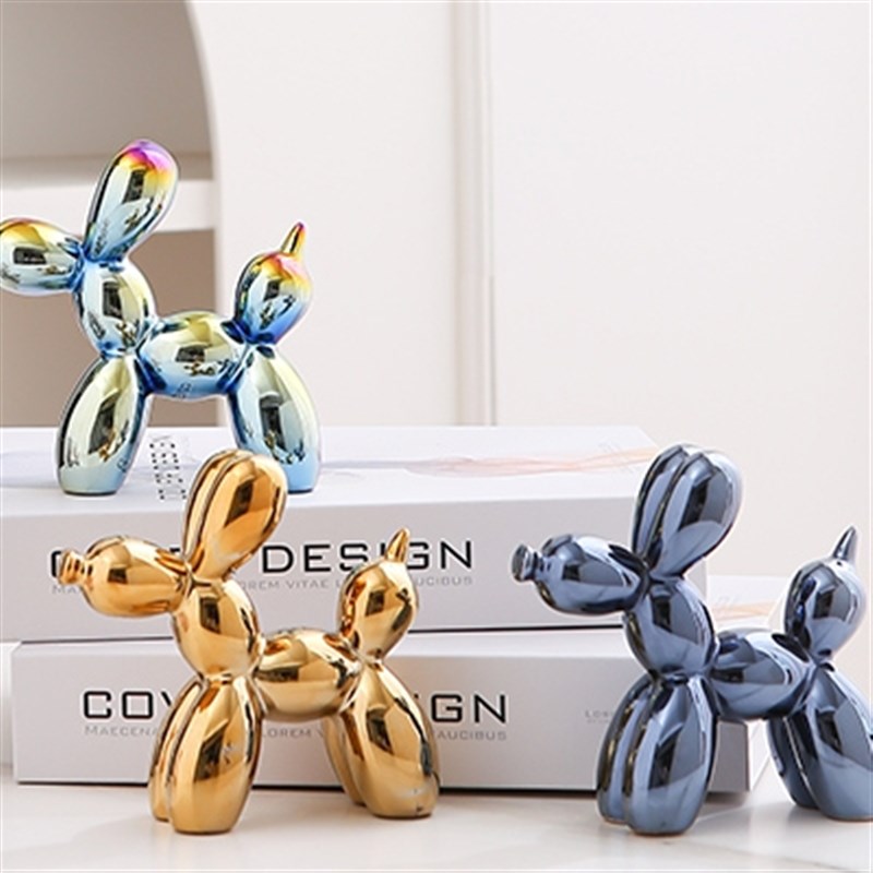 电镀陶瓷小气球狗24款金银粉兰橙紫红白色系列V桌面装饰品摆件