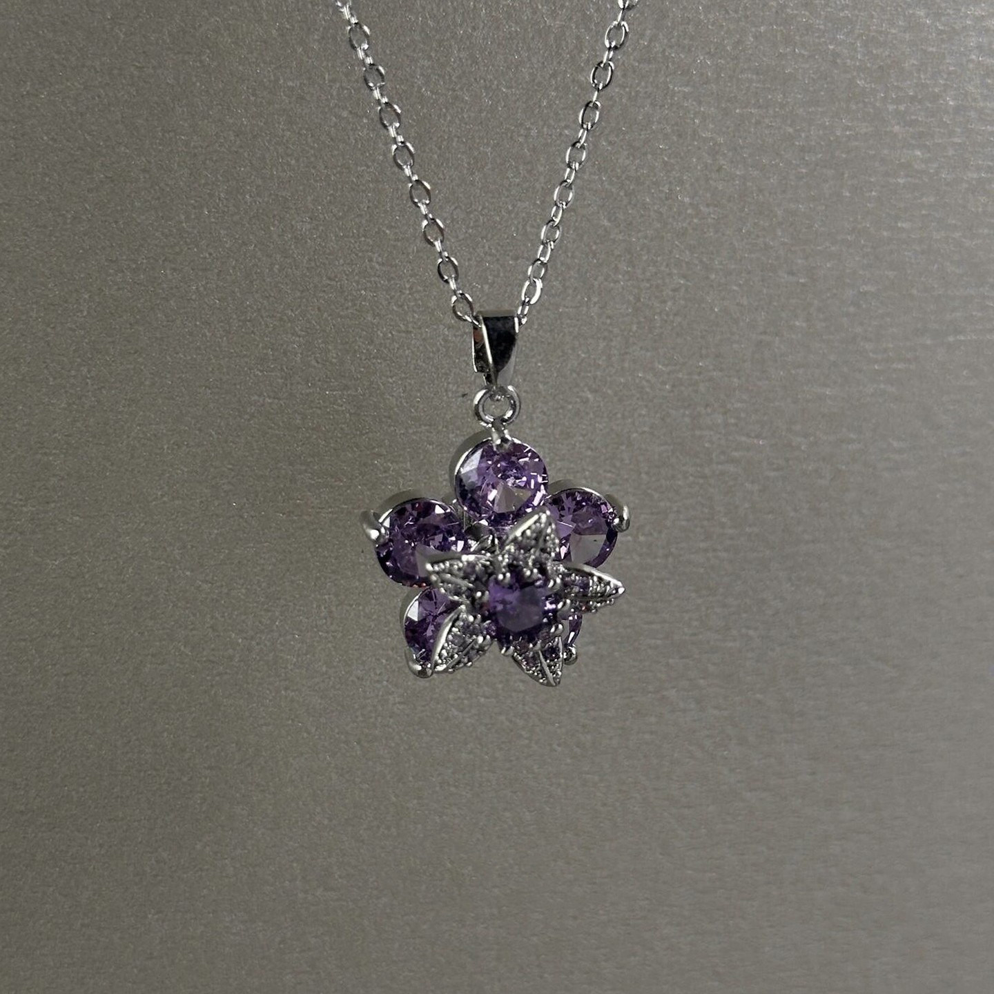 爆闪可旋转紫色花朵项链女款2025新款配饰高级感轻奢小众锁骨颈链