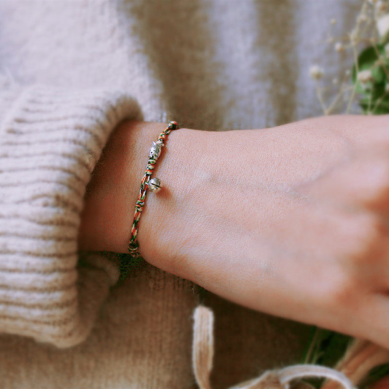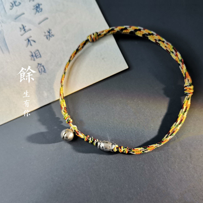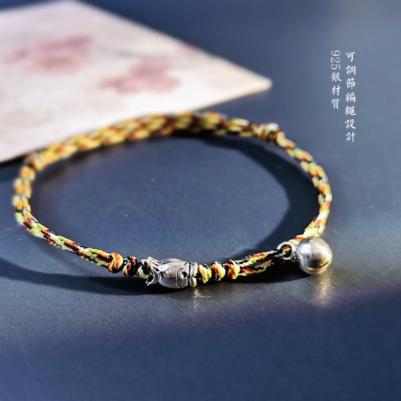 余生有你 原创日式和风小鱼儿925银五彩绳编织女铃铛手绳饰品礼物