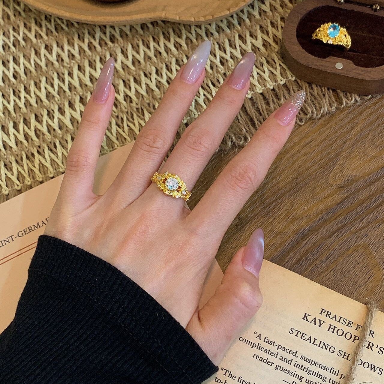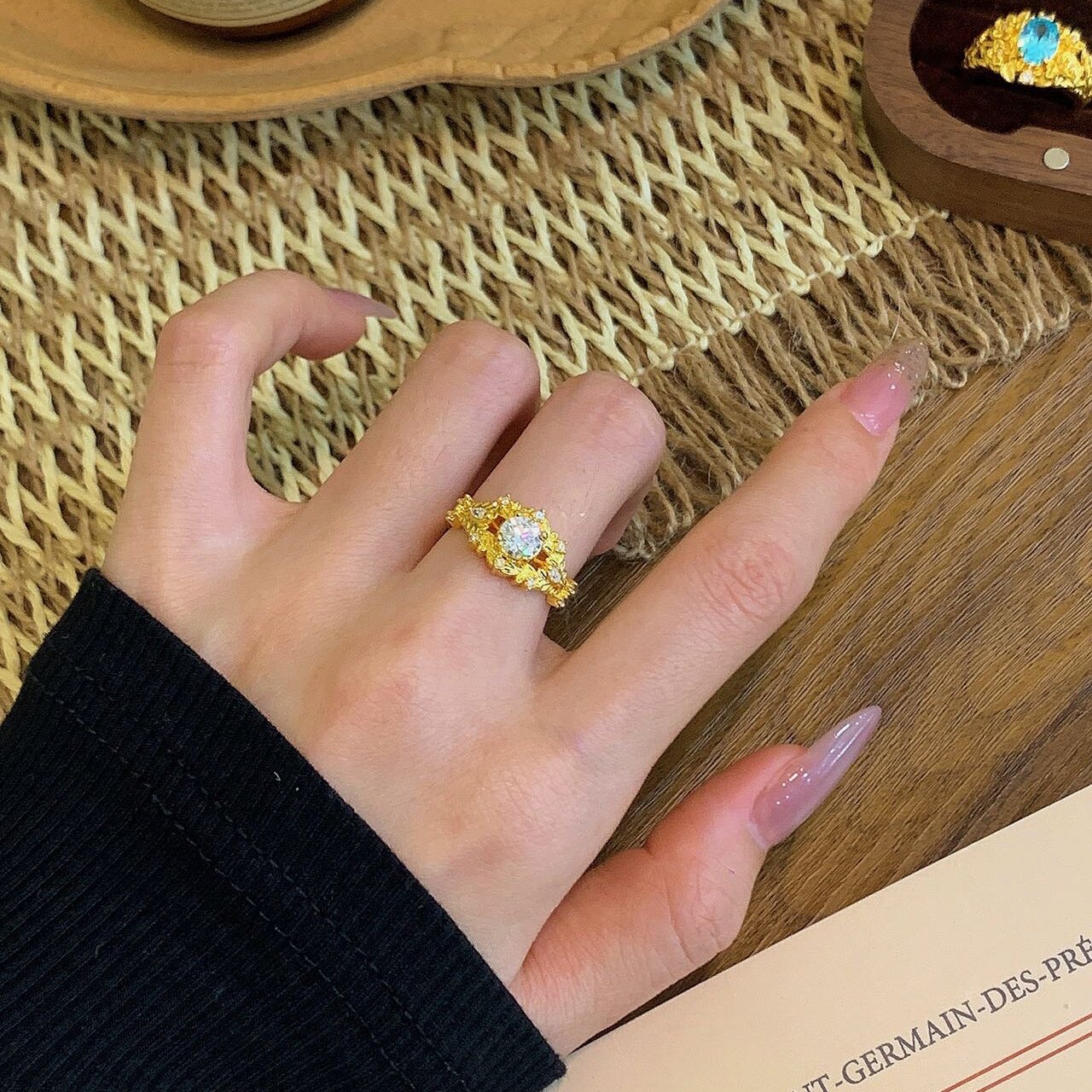 千夕足金9995D麦穗星芒戒黄金戒指女款送女友七夕情人节生日礼物